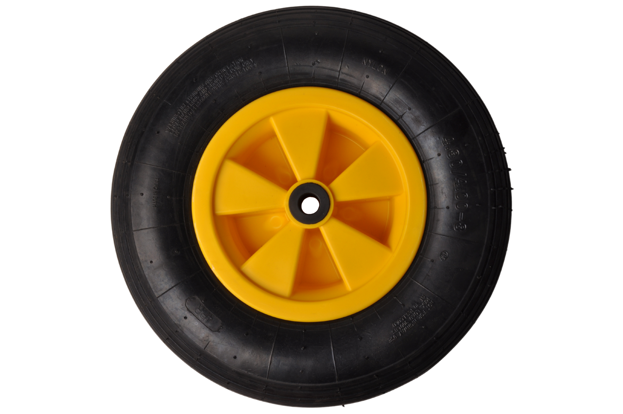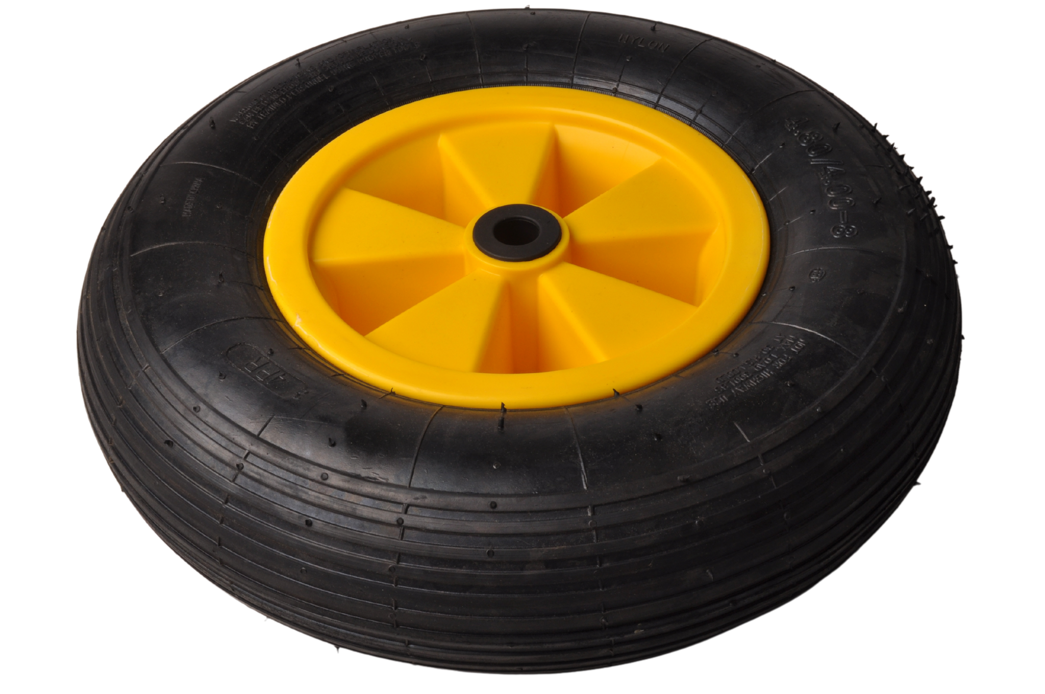 Deze boeggeleiding heeft een luchtband met gele kunststof velg.
