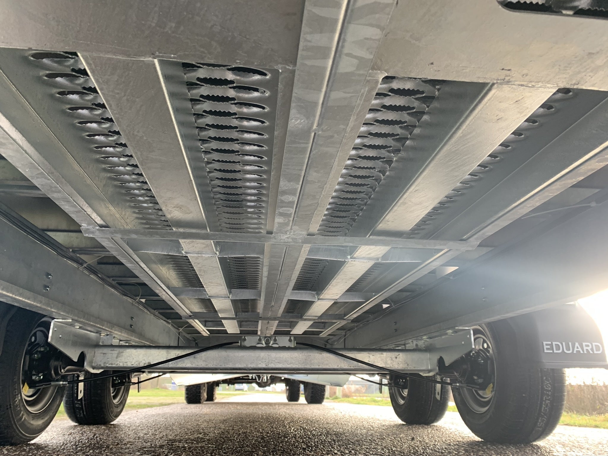 Geremde Eduard multitransporter - 406x180 cm - 2700 kg bruto laadvermogen - 56 cm laadvloerhoogte - 10 cm borden - inclusief oprijplaten en handlier
