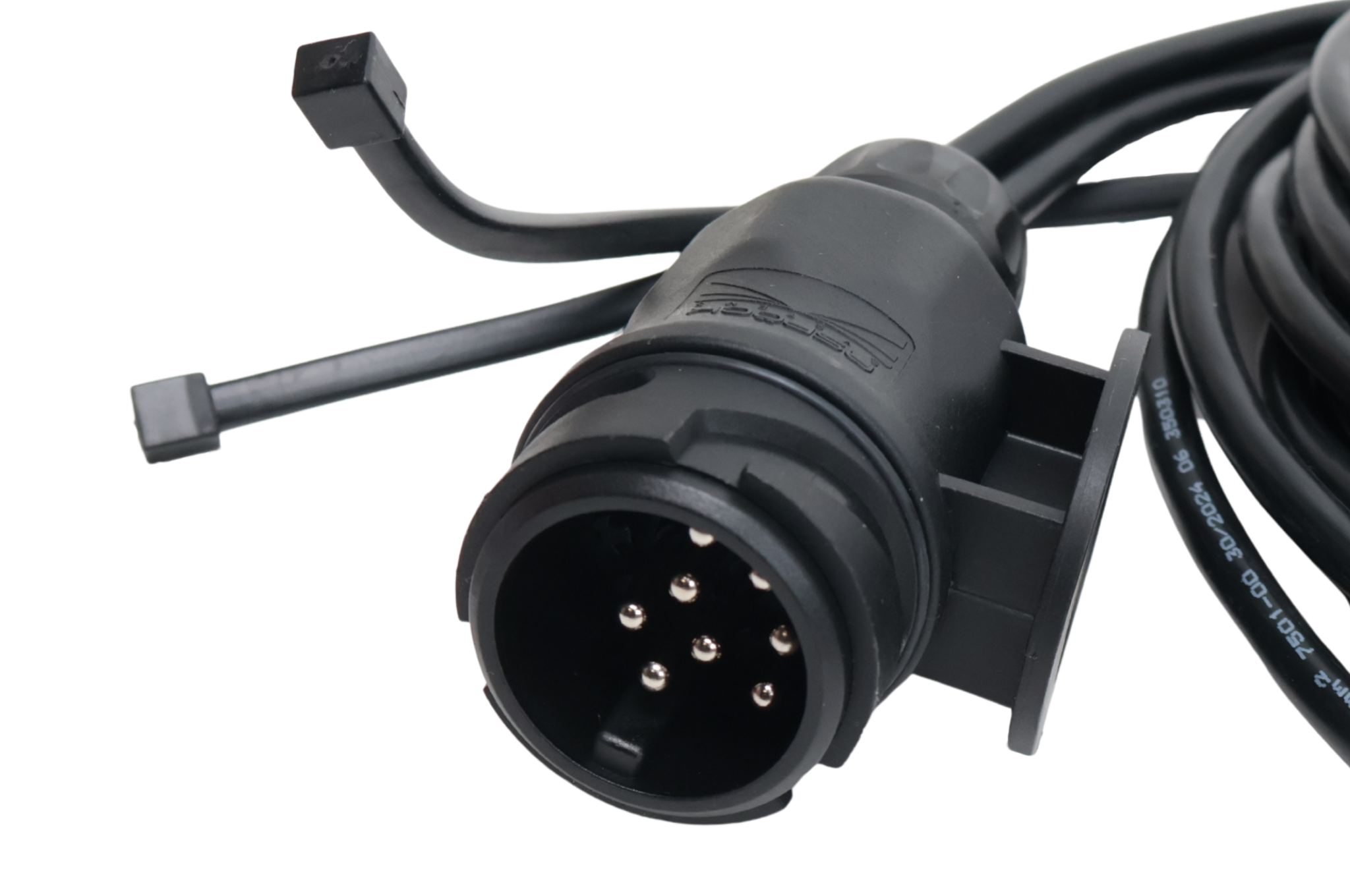 Deze Aspöck hoofdkabel splits gelijk bij de 13 polige stekker, dus twee kabels met connectoren van 4,5 meter. Premium kwaliteit kabel met aftakkingen van 2,5 meter platte DC kabel waar je met DC connectoren eenvoudig breedtelampen van Aspock op aan kan sluiten.