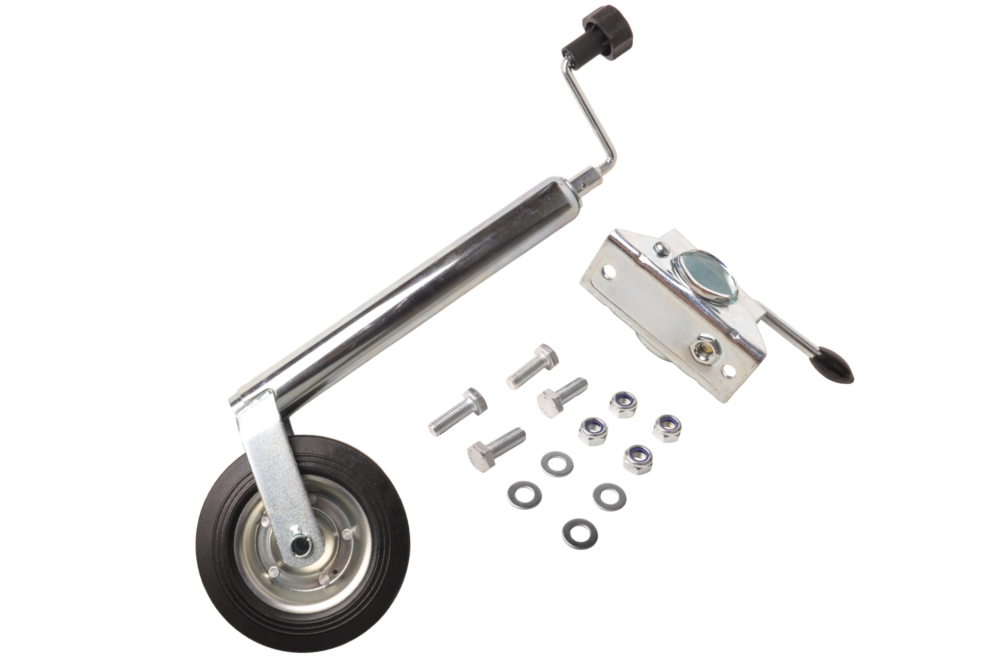 Universele 48mm neuswiel set welke geschikt is voor iedere ongeremde aanhanger en caravan. Geleverd inclusief neuswiel klem en bevestiging materiaal. Dit neuswiel is voorzien van een hard rubberen band met een stalen velg. Het verfijnde interne draaimechanisme loopt gesmeerd en is geschikt voor jarenlang gebruiksgemak.