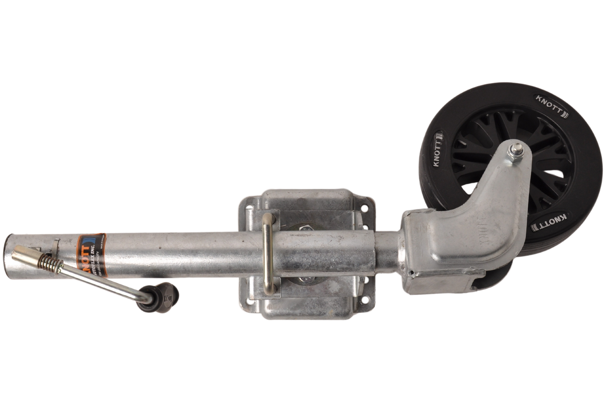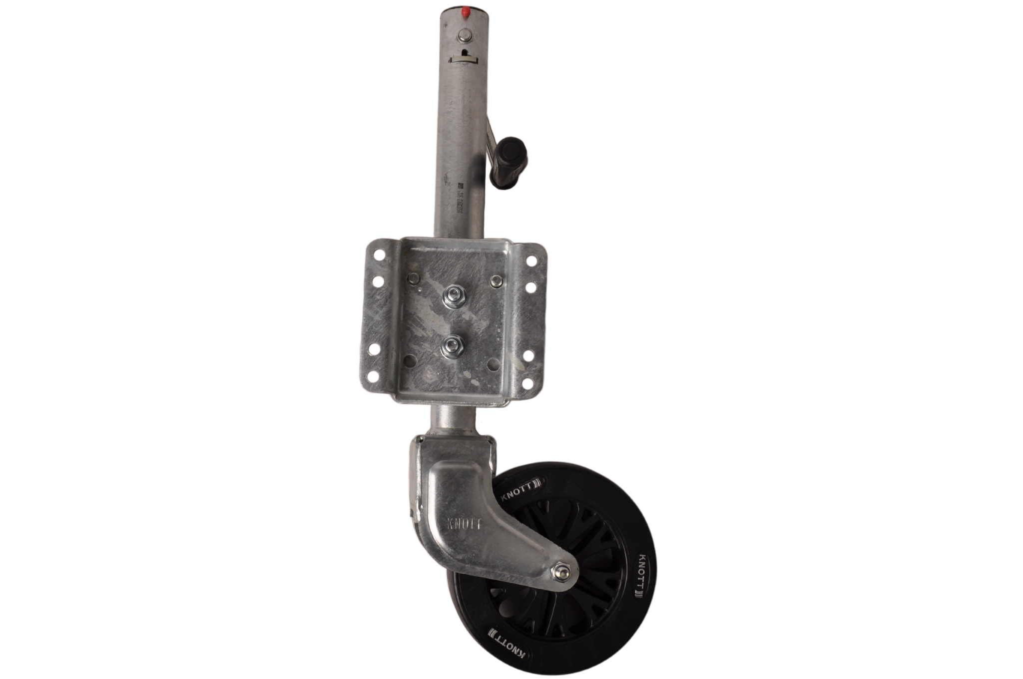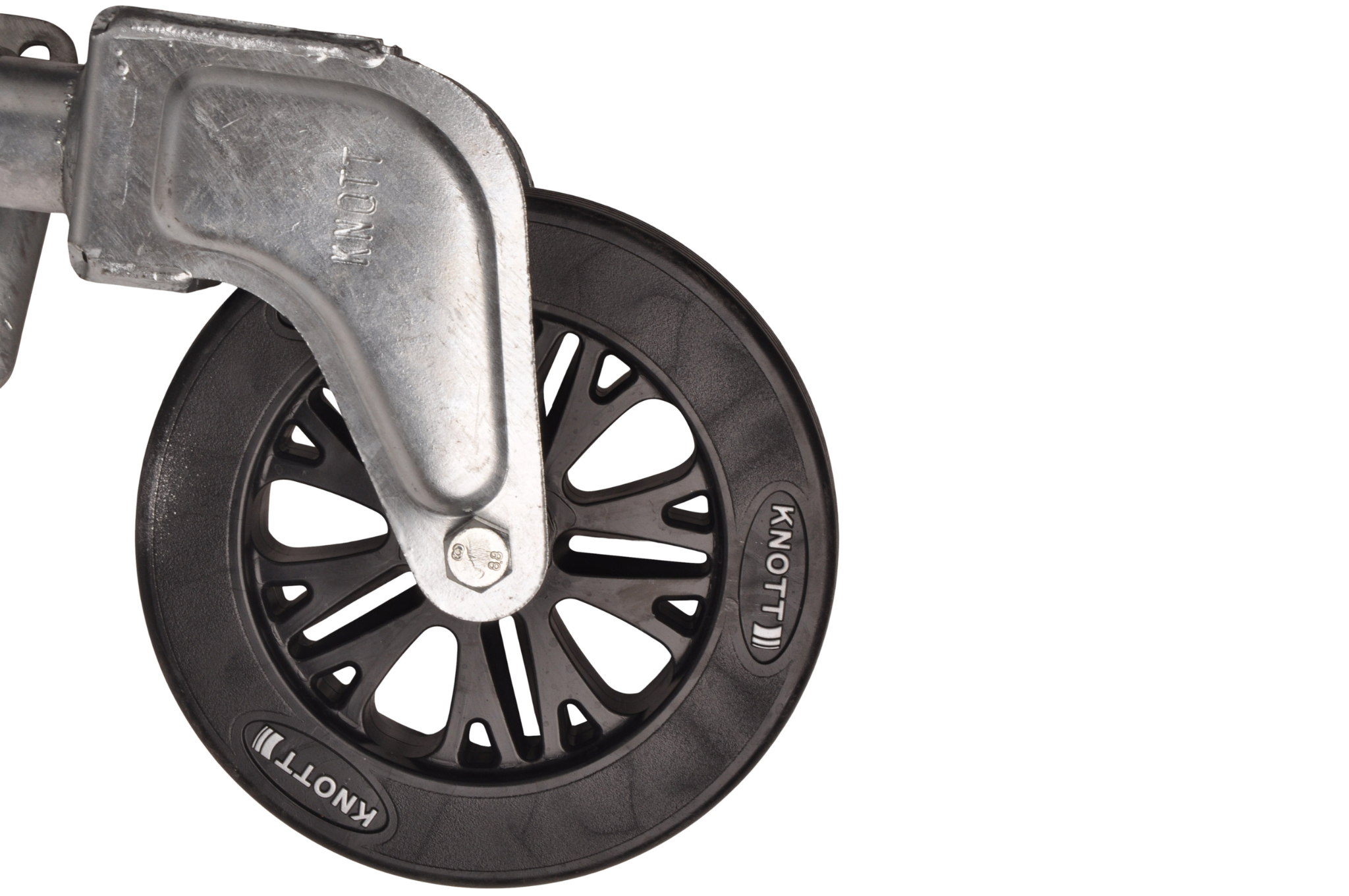 Dit neuswiel kan eenvoudig weggedraaid worden door middel van een veersysteem. Hierdoor hoef je het neuswiel minder ver op te draaien en/of zit het niet in de weg bij de dissel. Hierdoor kan je bijvoorbeeld ook het voorbord nog kantelen. Dit neuswiel heeft een maximaal draagvermogen van 150 kg.