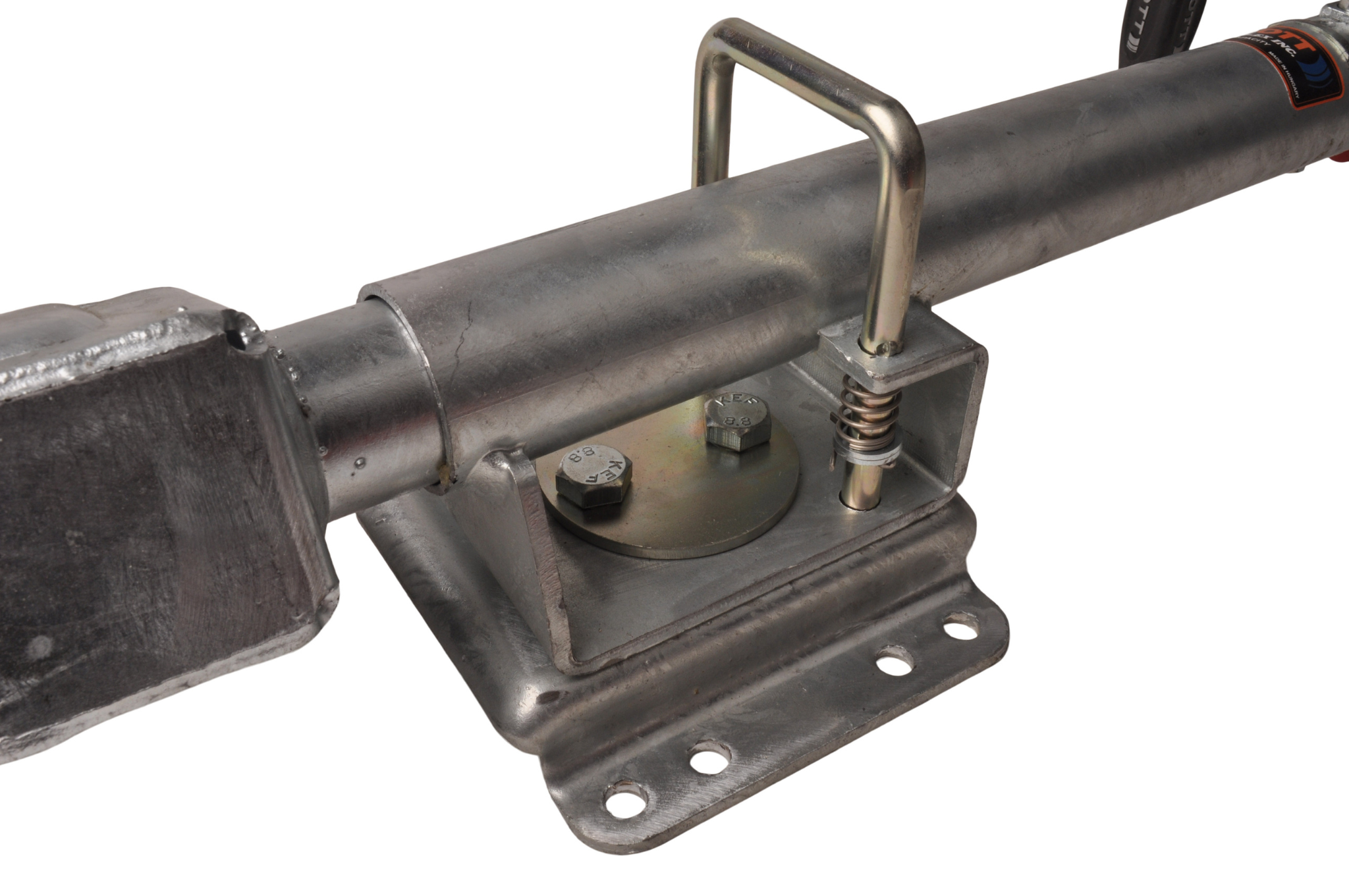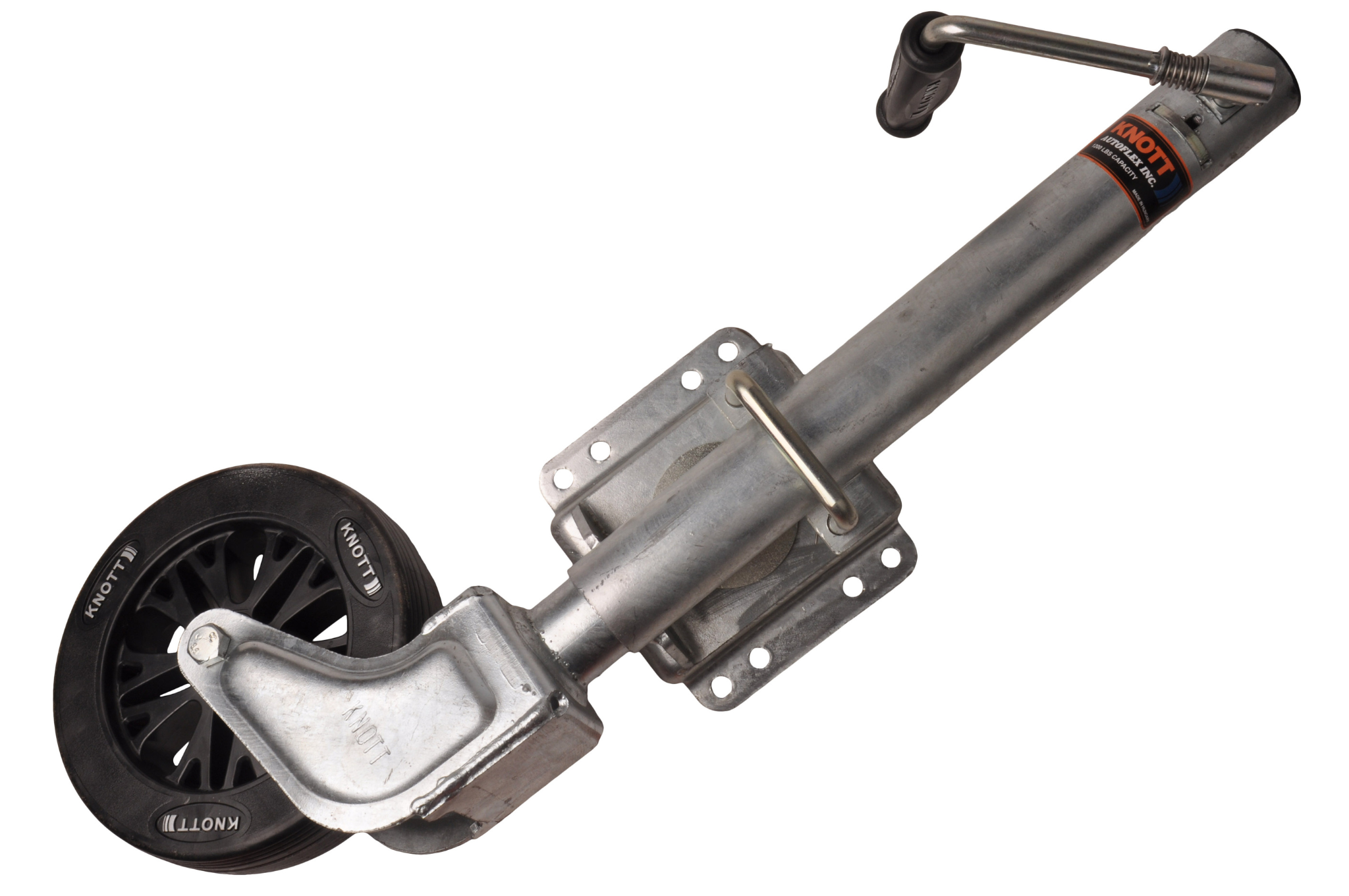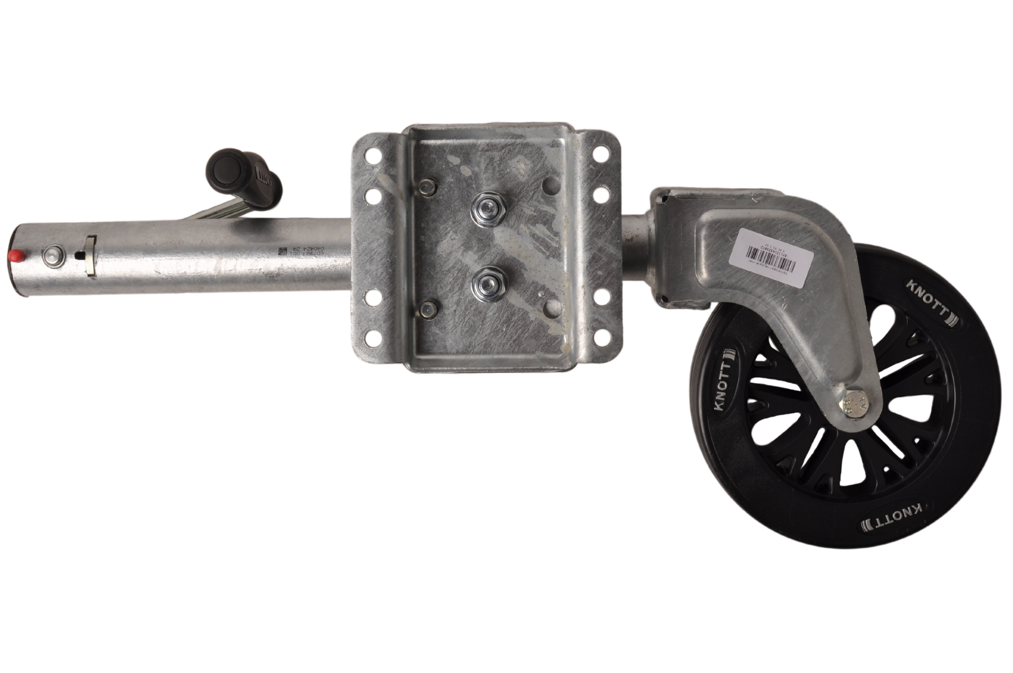 Dit neuswiel kan eenvoudig weggedraaid worden door middel van een veersysteem. Hierdoor hoef je het neuswiel minder ver op te draaien en/of zit het niet in de weg bij de dissel. Hierdoor kan je bijvoorbeeld ook het voorbord nog kantelen. Dit neuswiel heeft een maximaal draagvermogen van 150 kg.