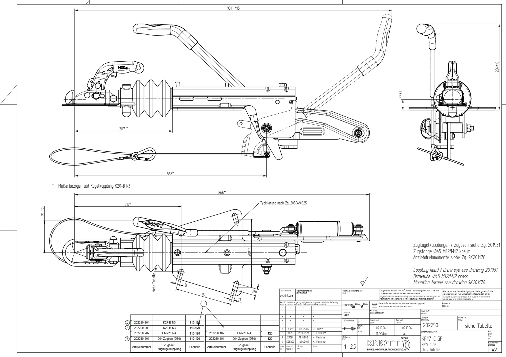 Knott oplooprem aanhanger KF17-C - 1700 kg maximaal trekvermogen V-dissel aansluiting
