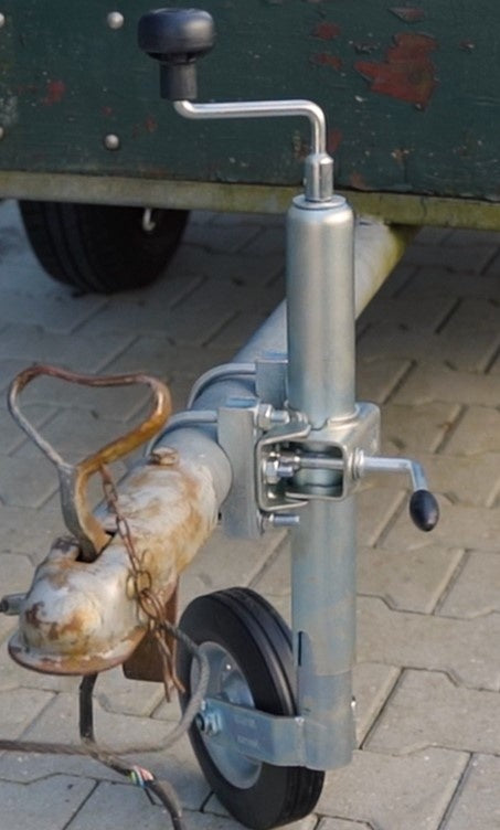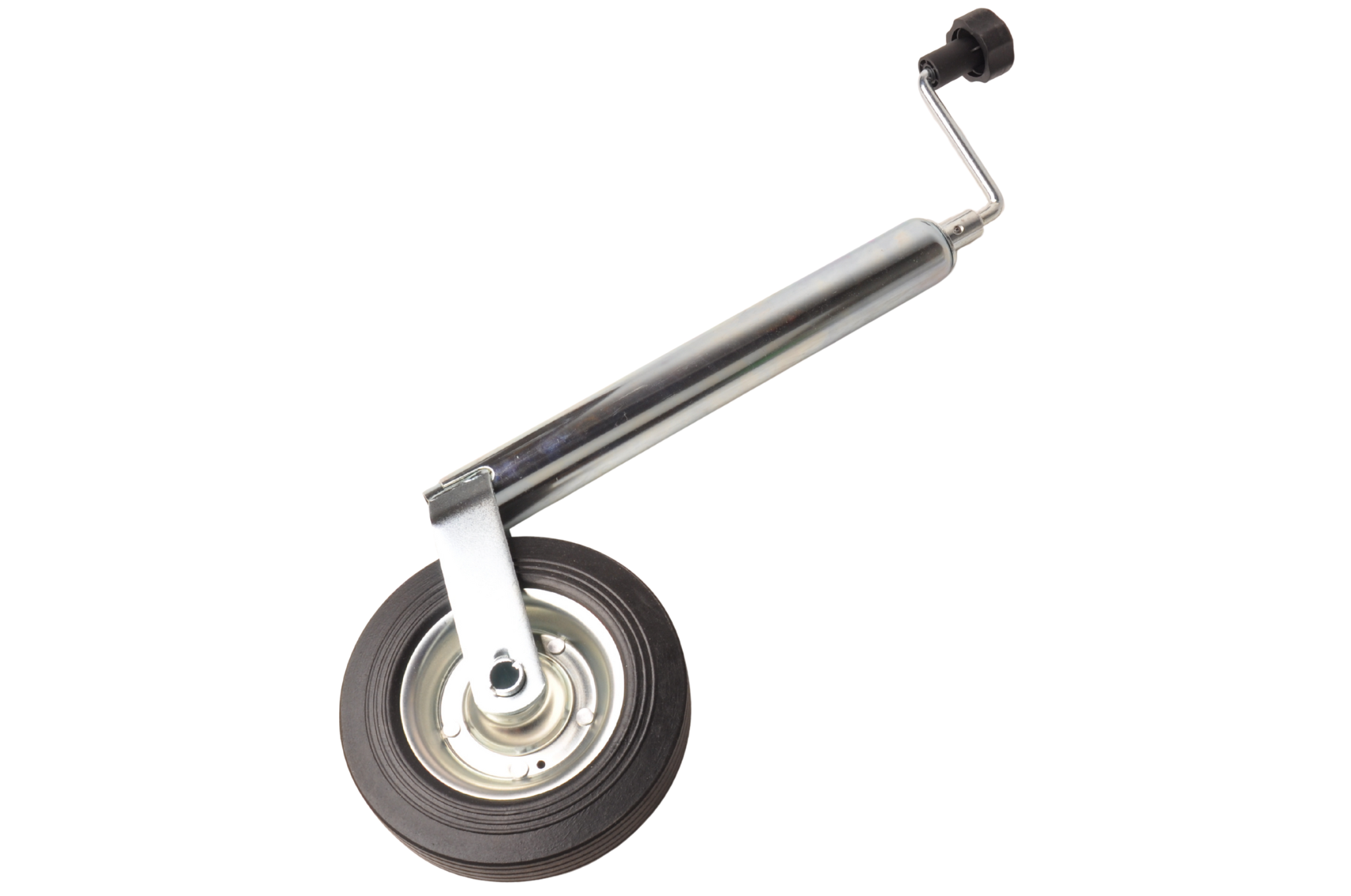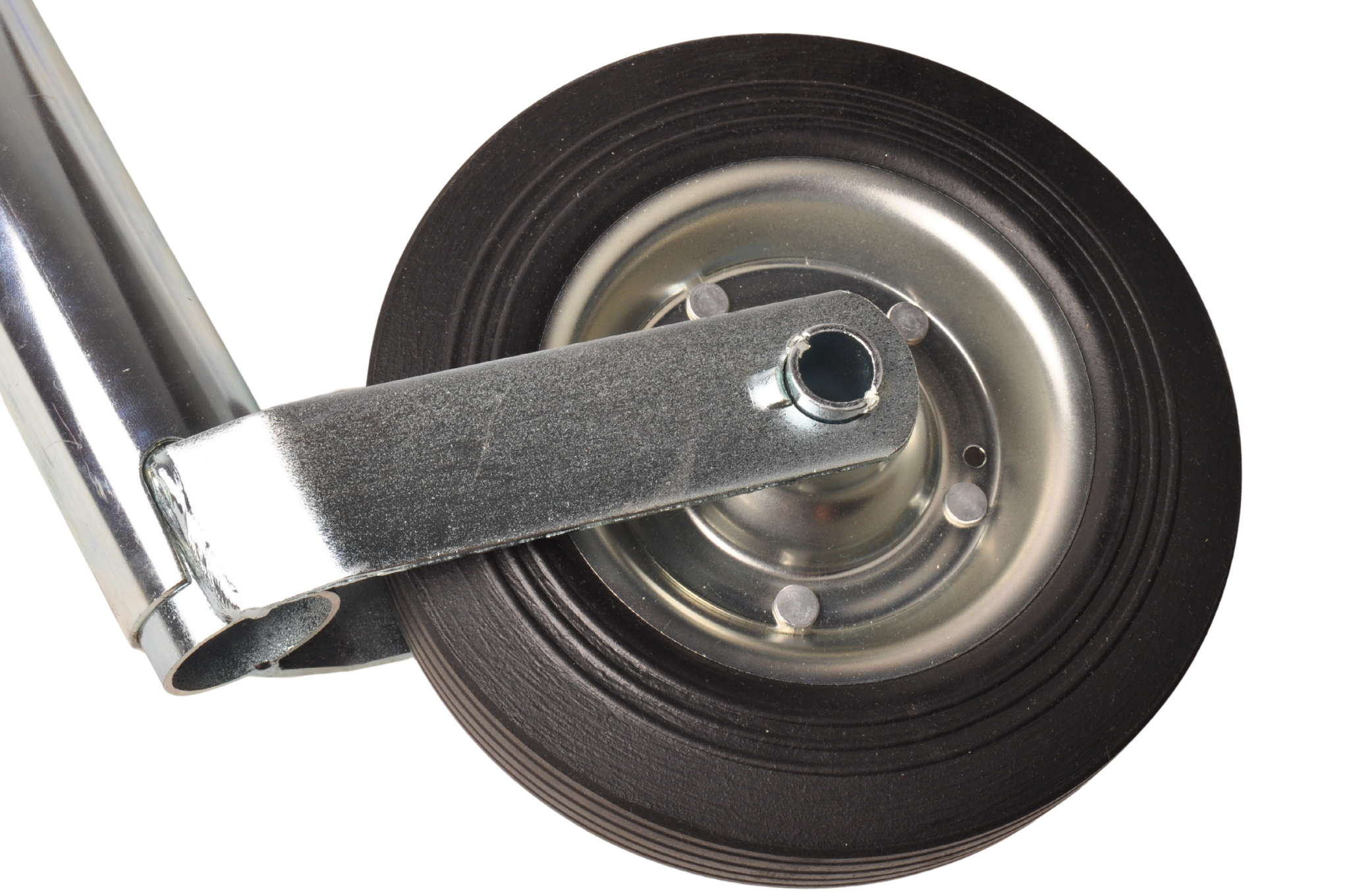 Gegalvaniseerd stalen neuswiel met een buisdiameter van 48 mm. Het wieltje heeft een stalen velg en een hard rubberen band.