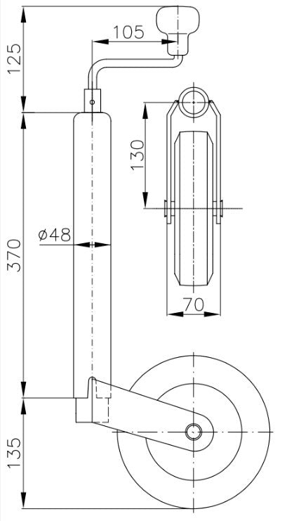 Dit is een los 48 mm neuswiel, bestel eenvoudig de aanbevolen product combinatie voor het 48 mm neuswiel inclusief benodigde bevestigingsmaterialen.