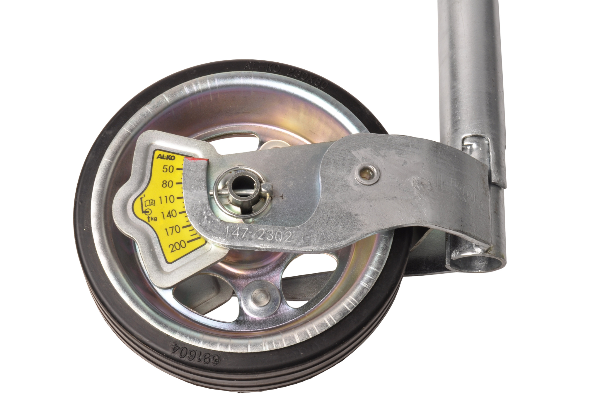 AL-KO neuswiel met een buisdiameter van 48 mm. Dit sterke neuswiel is uitgerust met stalen velg met een kogeldrukmeter. Door deze kogeldrukmeter kan je eenvoudig de kogeldruk meten. Ook heeft dit neuswiel een slinger met een druklager hierdoor kan je de slinger zeer eenvoudig bedienen. Dit neuswiel heeft een maximale belasting van 300 kg bij stilstand en 180 kg bij rangeren.