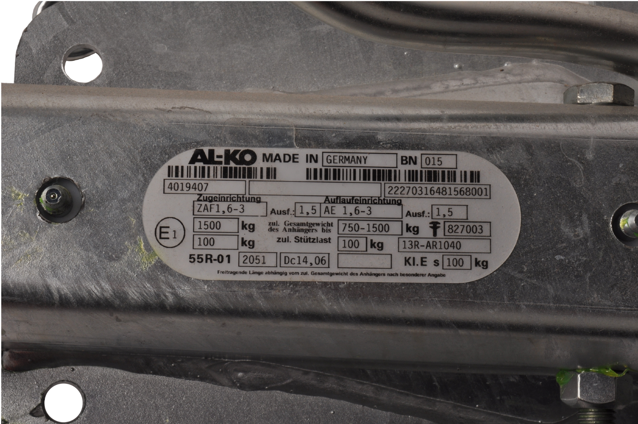 BPW oplooprem aanhanger - ZAF 1,6-3 - uitvoering C - maximaal trekvermogen: 1500 kg - incl. neuswielklem