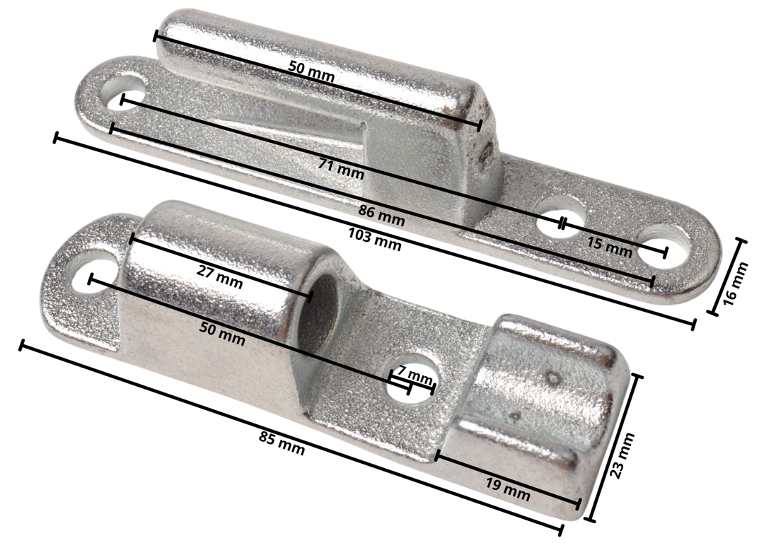Origineel Anssems scharnier voor zijbord, deze scharnier is gemaakt van gegalvaniseerd staal. Dit complete 2-delige scharnier zorgt ervoor dat het zijbord neer kan klappen. Dit scharnier wordt standaard gebruikt op alle BSX en PSX aanhangwagens van Anssems. Gebruik altijd originele onderdelen om er zo zeker van te zijn dat het scharnier ook in de bestaande boutgaten past.