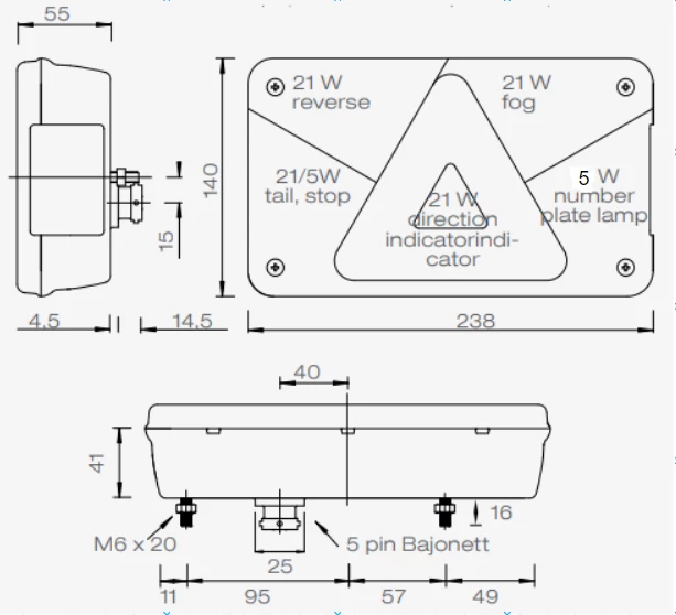 - Achterlicht/remlicht 21/5W