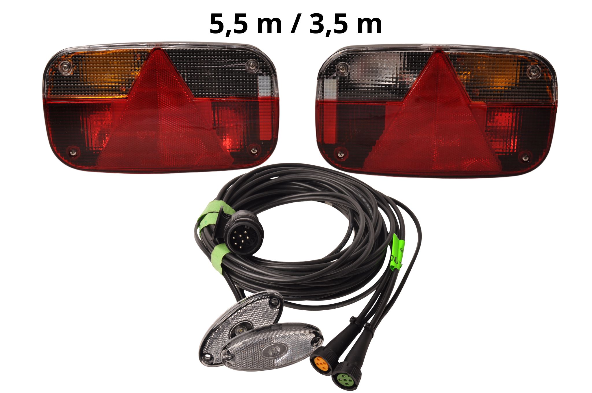 Kabel: 5,5 meter met voor gemonteerde LED markeringsverlichting (Flatpoint) (wit) op 3,5 meter platte kabel.
