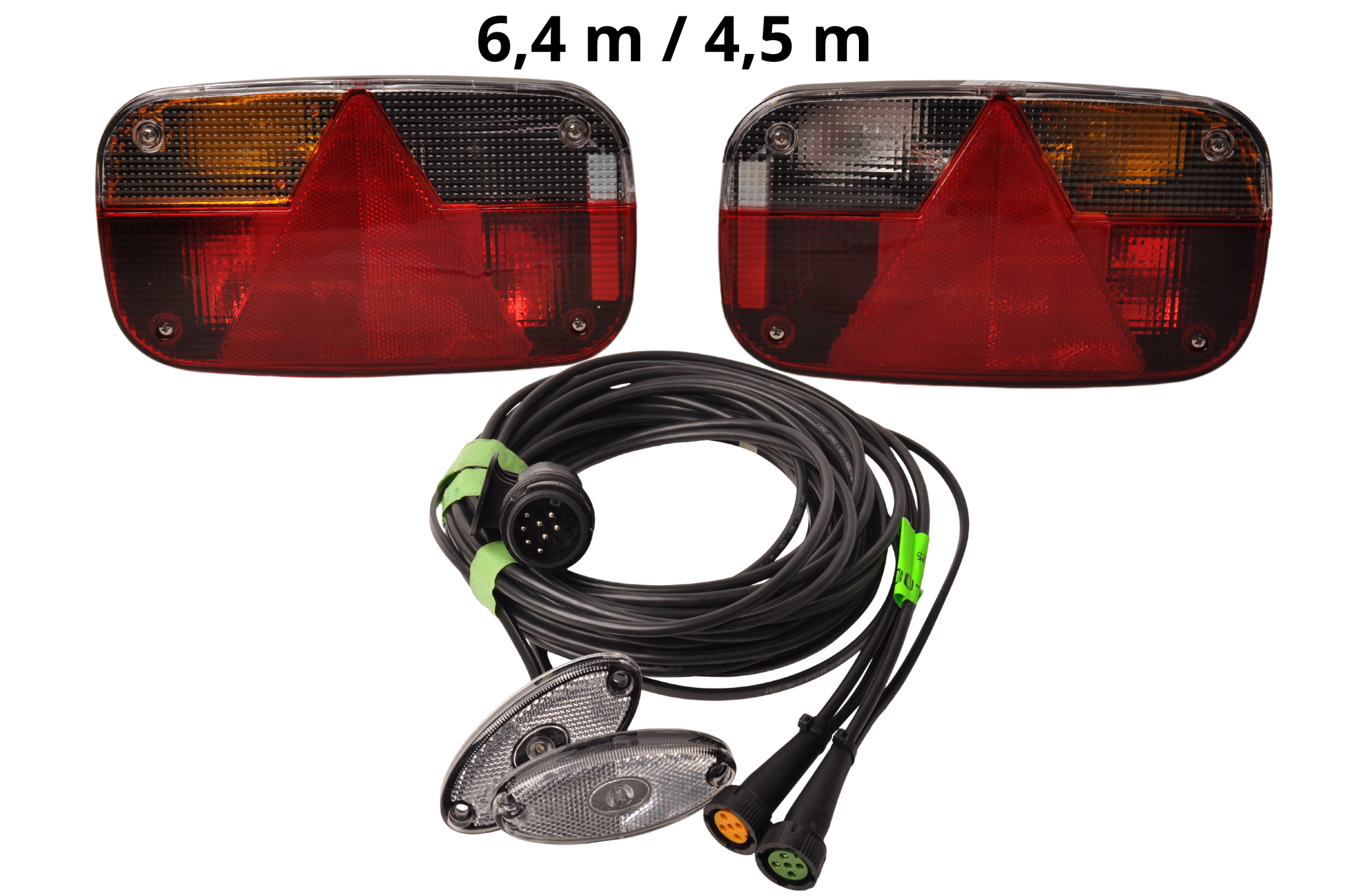 Kabel: 6,4 meter met voor gemonteerde LED markeringsverlichting (Flatpoint) (wit) op 4,5 meter platte kabel.