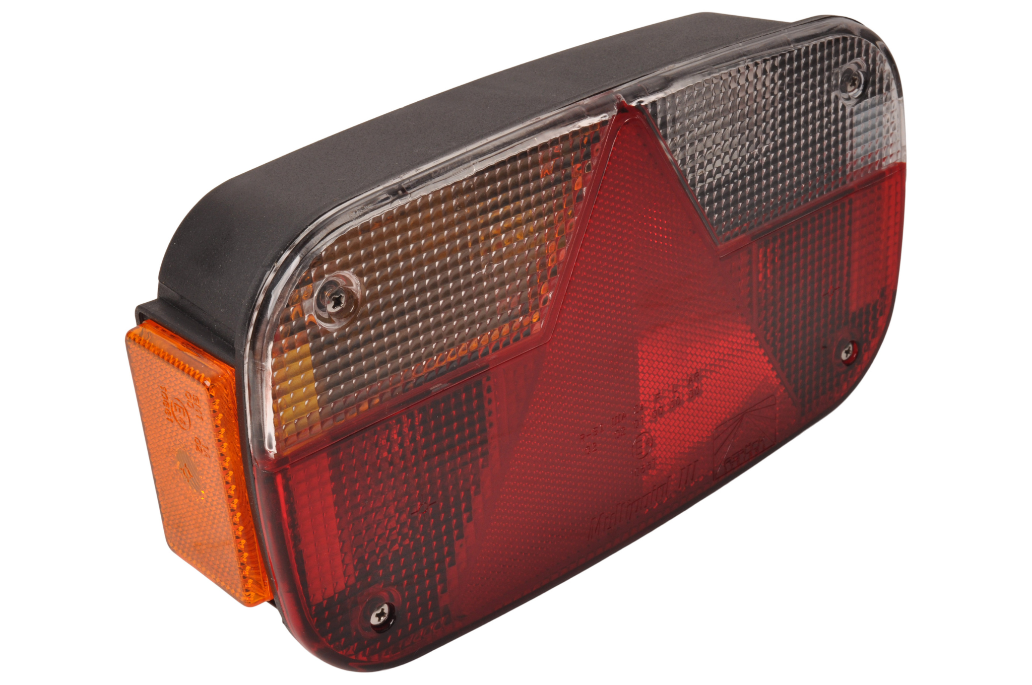 Het linker Aspock multipoint 3 model met een 8 polige connector beschikt over alle beschikbare functies, inclusief de achteruitrijlamp. Dit achterlicht heeft 6 functies en daarom ook 6 polen maar past dus op 8 polige aansluiting.Eenvoudig aan te sluiten door middel van Aspock connector. Om de connector op de unit aan te sluiten is een gat nodig van 30 mm.