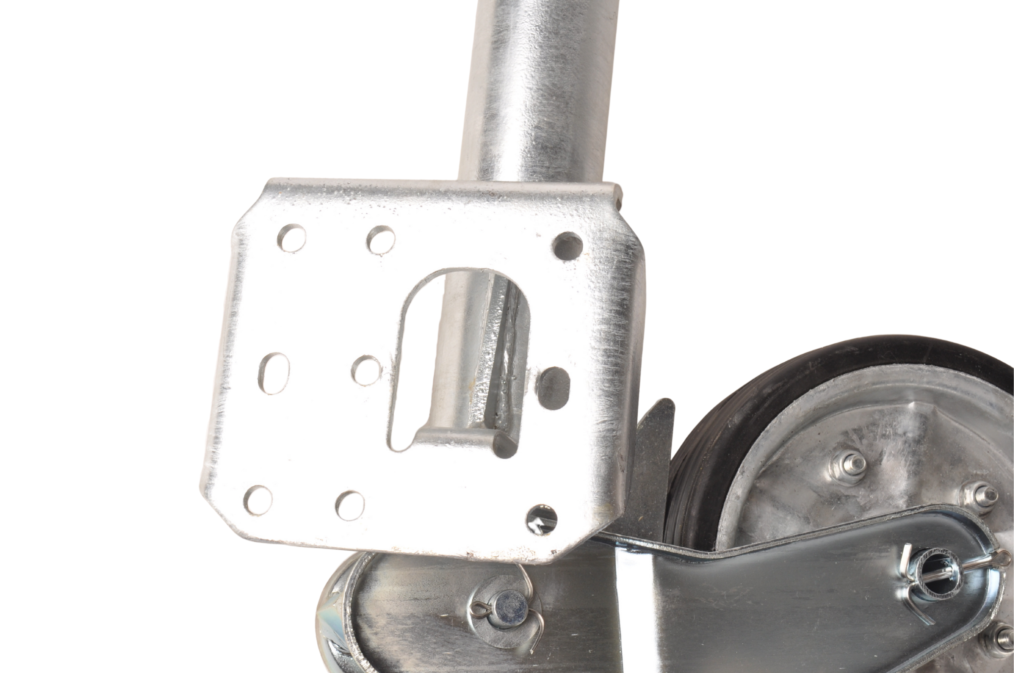 Professioneel neuswiel geschikt voor heavy duty gebruik waaronder op Hapert aanhangwagens. Dikte van materiaal, laswerk en ook het massieve wieltje zijn net even wat sterker uitgevoerd dan andere standaard neuswielen.