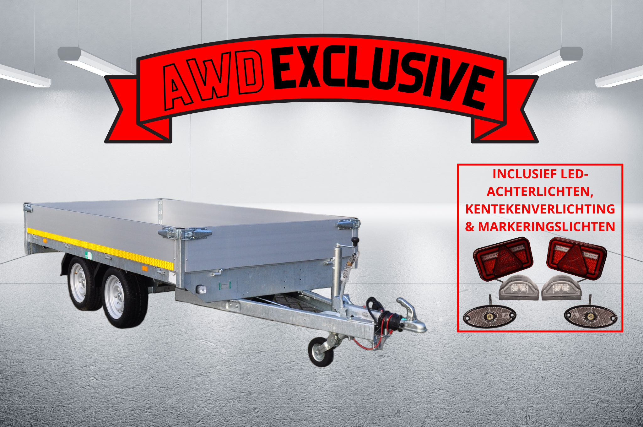 Lease aanbod AWD exclusive geremde Eduard plateauwagen - 310x160 cm - 2000 kg - inclusief MultiLED verlichting & LED martkeringsverlichting