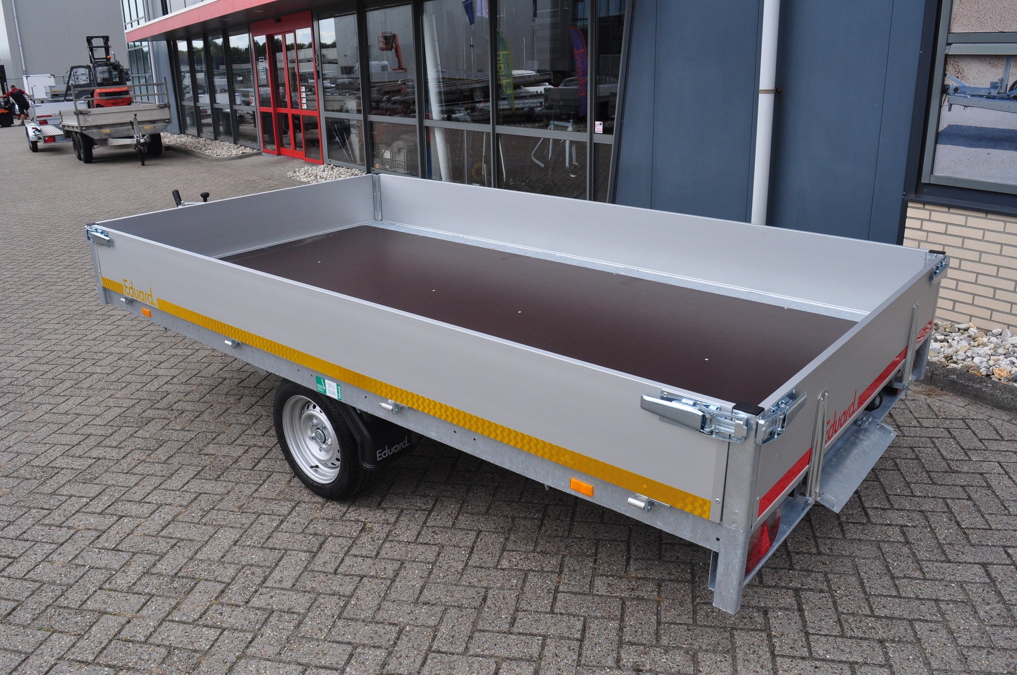 Lease aanbod AWD exclusive geremde Eduard plateauwagen - 310x180 cm - 1500 kg bruto laadvermogen - 63 cm laadvloerhoogte - 30 cm borden - inclusief gratis accessoires voorrek & aanhangernet