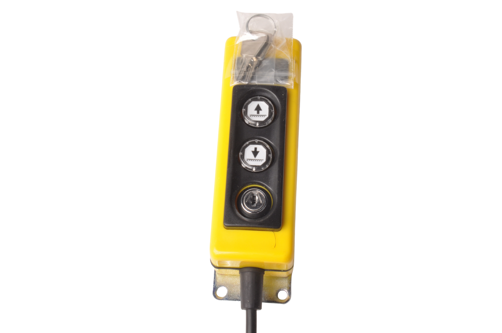 Bediening powerpack met sleutelvergrendeling. Deze bediening heeft een 4 meter kabel. Deze bediening is te gebruiken met de onderstaande pomp.