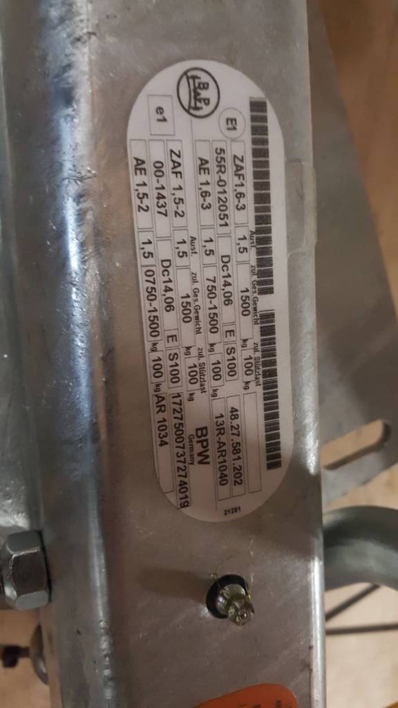 BPW oplooprem aanhanger - ZAF 1.6-3 - maximaal trekvermogen: 1500 kg - incl. neuswielconsole aan de zijkant
