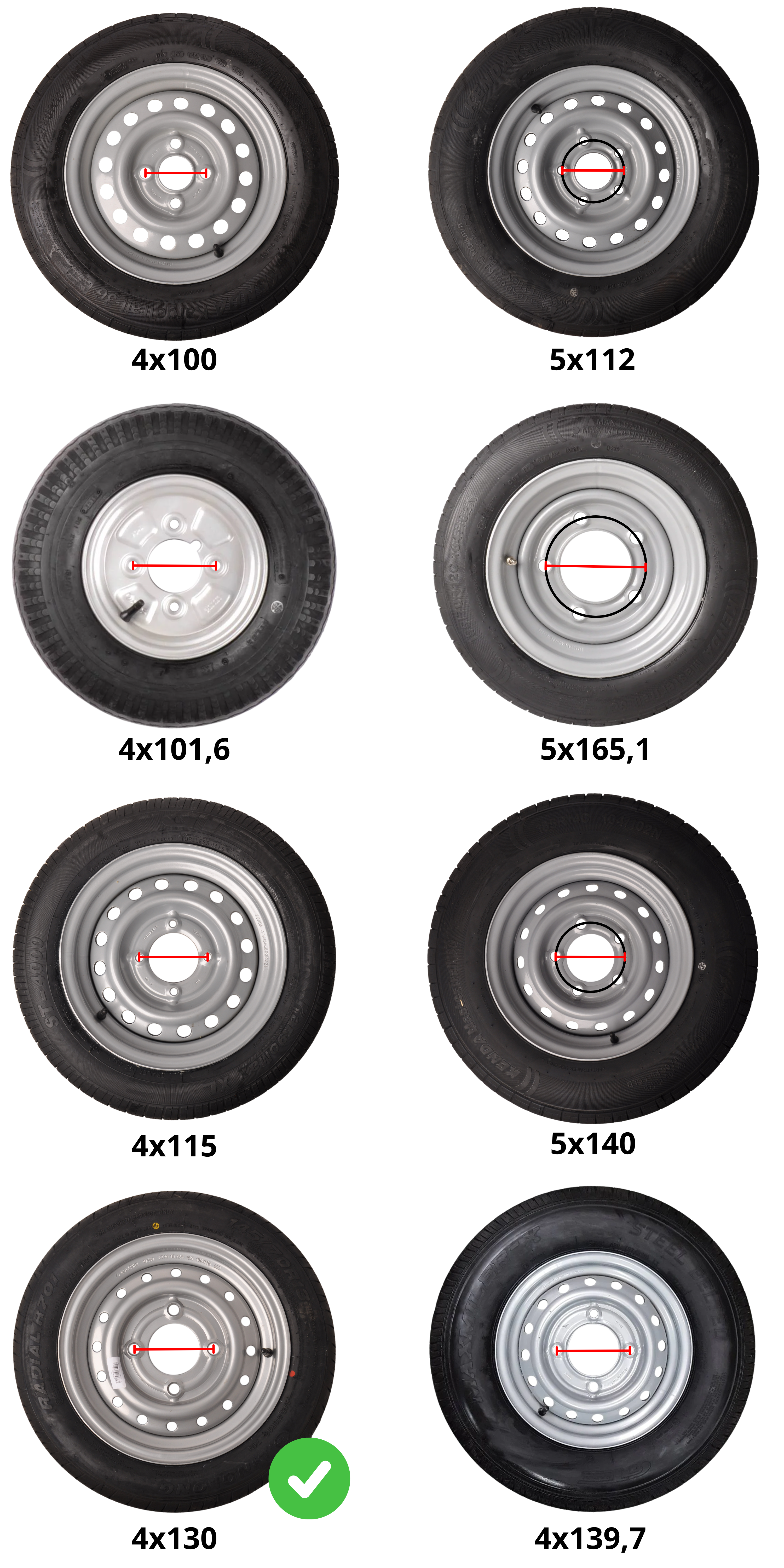 Compleet aanhanger wiel - 135R13 - steekmaat: 4x130 - draagvermogen: 335 kg - naafdiameter: 85 mm