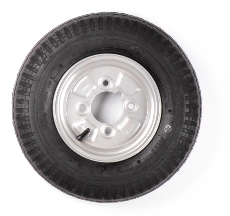 Dit complete 10 inch aanhanger wiel met de bandenmaat 145/80 word veel gebruikt bij vouwwagens en kleine aanhangwagens. De complete diameter van dit wiel is 49,6 cm en de totale breedte is 12,7 cm. De velg heeft een steekmaat van 4x101,6 mm.