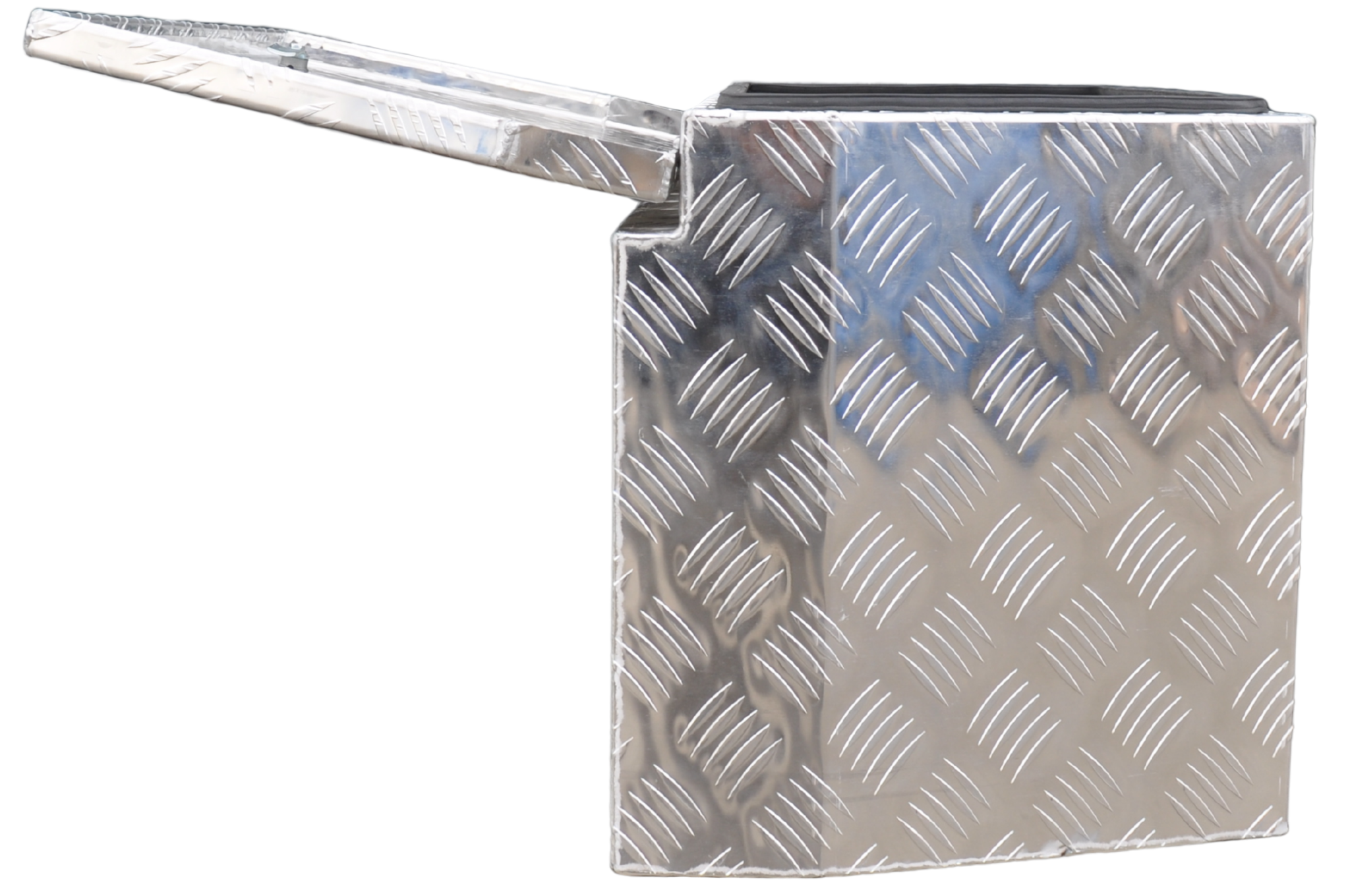 Deze aluminium disselbak van traanplaat is perfect voor het veilig vervoeren van gereedschap of losse onderdelen, bijvoorbeeld op een aanhanger. Dankzij de rubberen rand sluit de klep zacht en trillingsvrij, en valt deze netjes over de bak heen. Hierdoor is de kist goed beschermd tegen spatwater.