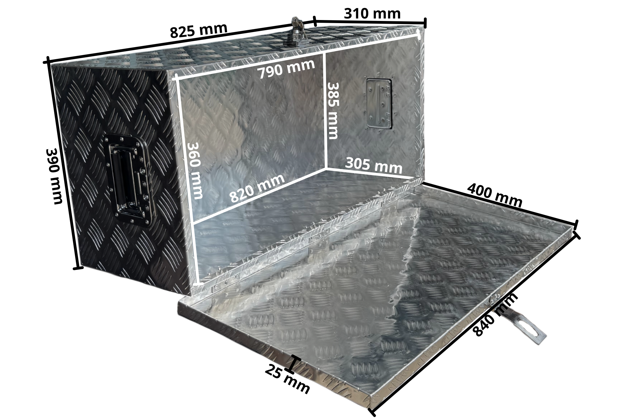Disselkist aluminium traanplaat 840x400x310 mm - vlinderslot