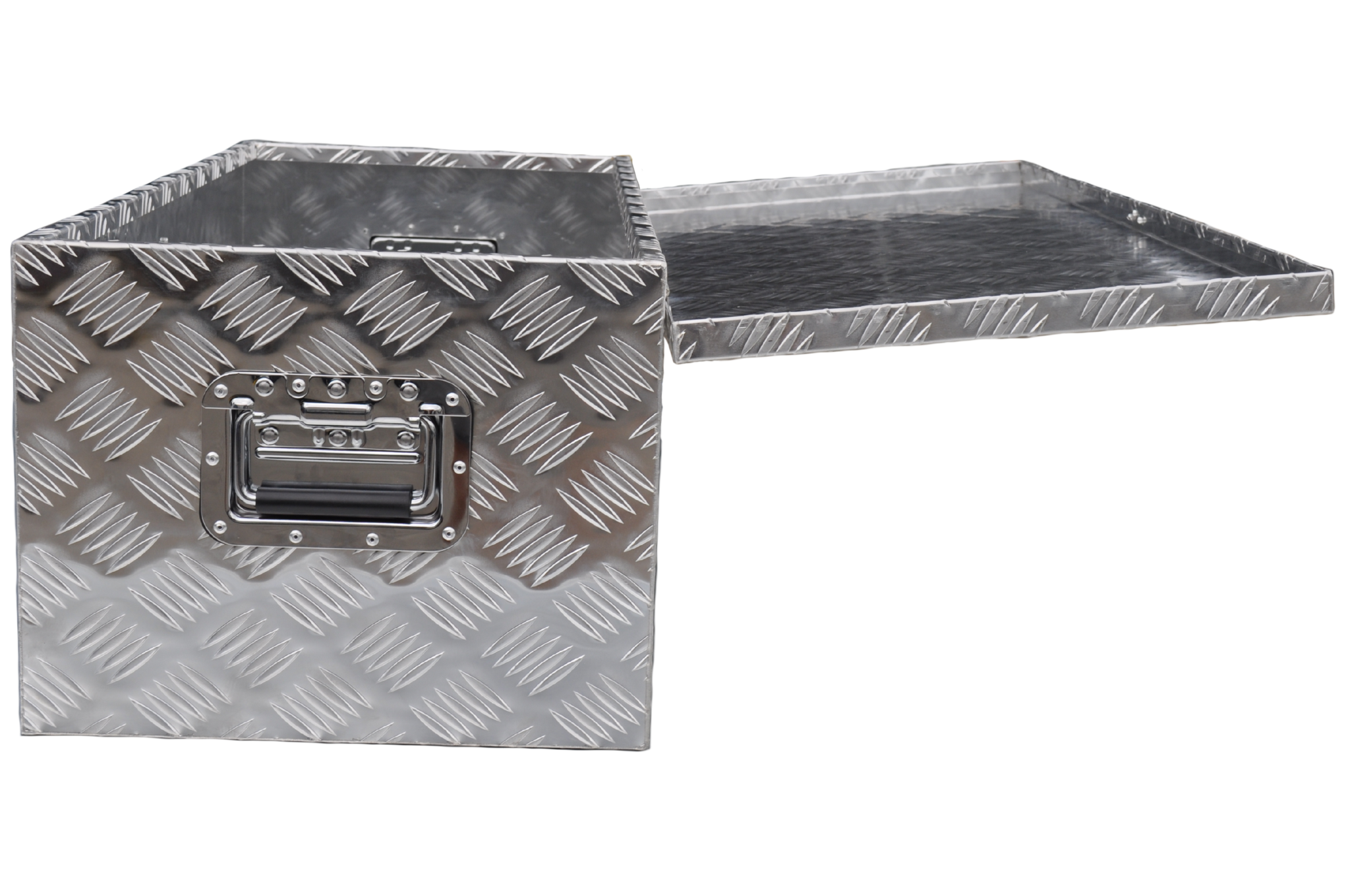 Deze aluminium traanplaat disselkist is ideaal voor het veilig opbergen en vervoeren van gereedschap of losse onderdelen op de aanhanger. Dankzij het compacte ontwerp ook te gebruiken als gereedschapskist.