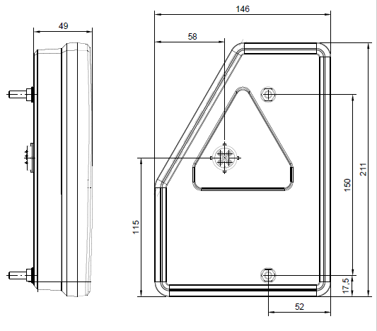 Het FT-277 model van Fristom heeft een 5 polige Aspock connector aansluiting. Is volledig led en deze rechter lamp is ook voorzien van de achteruitrijverlichting.