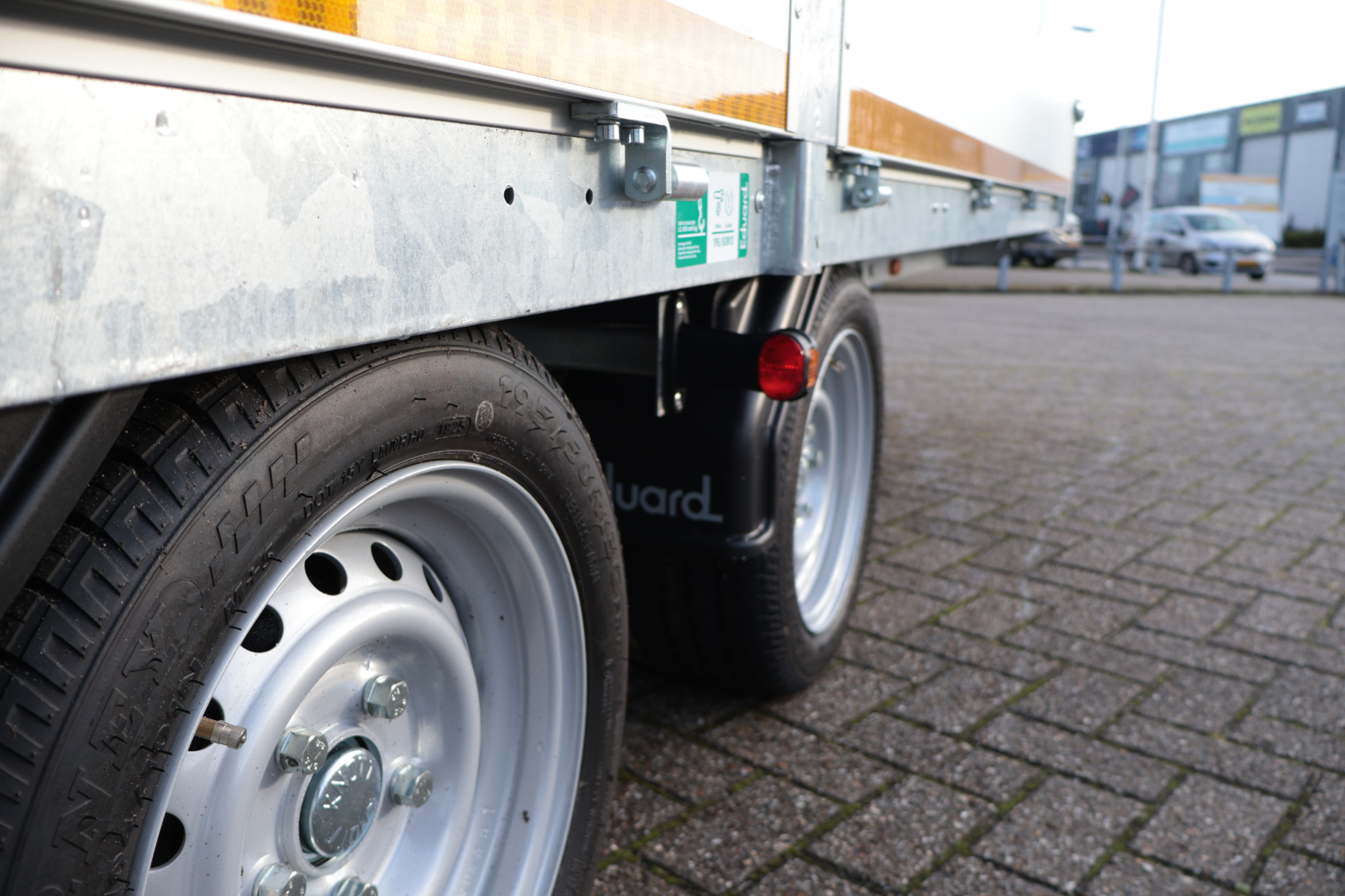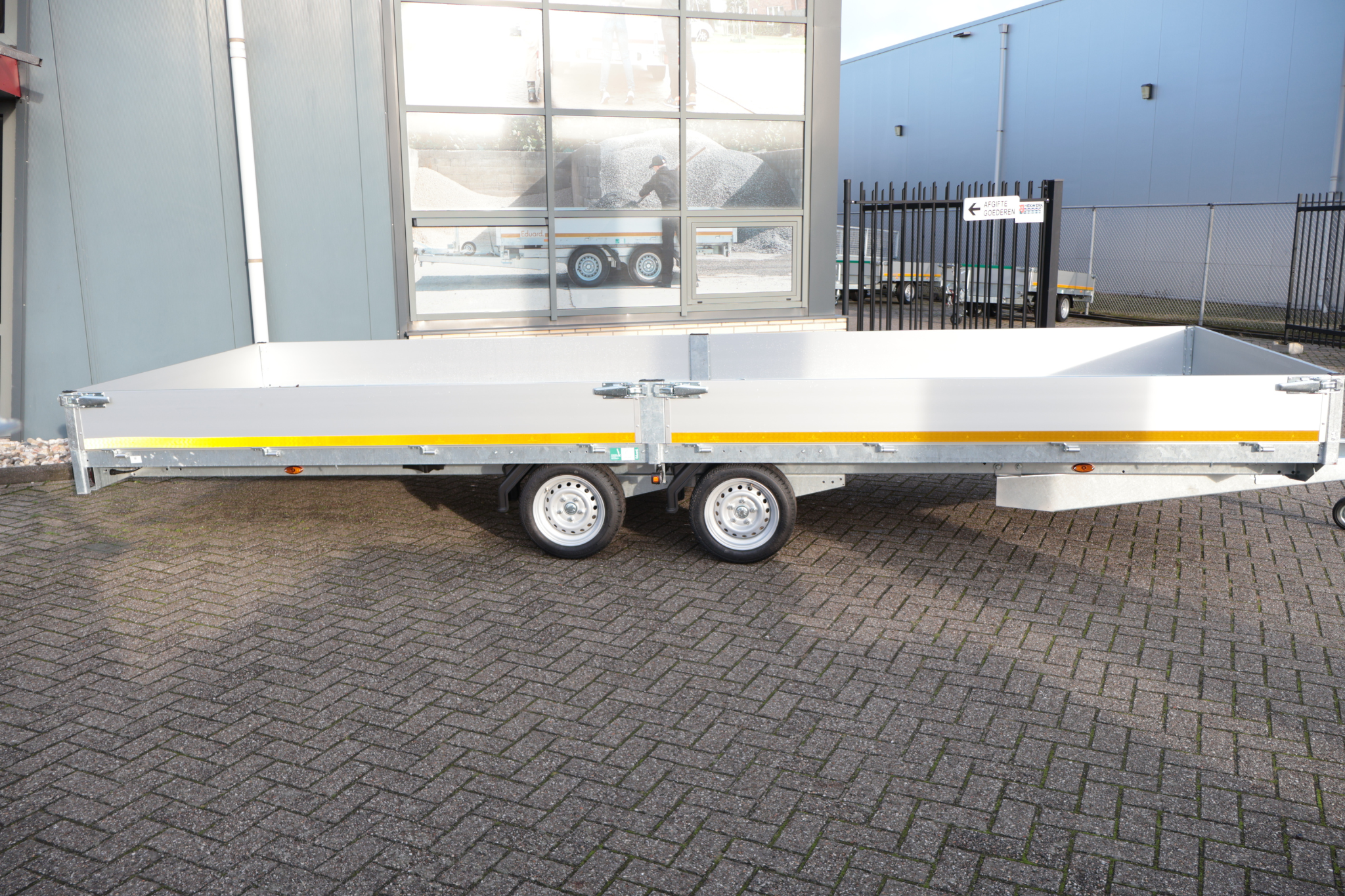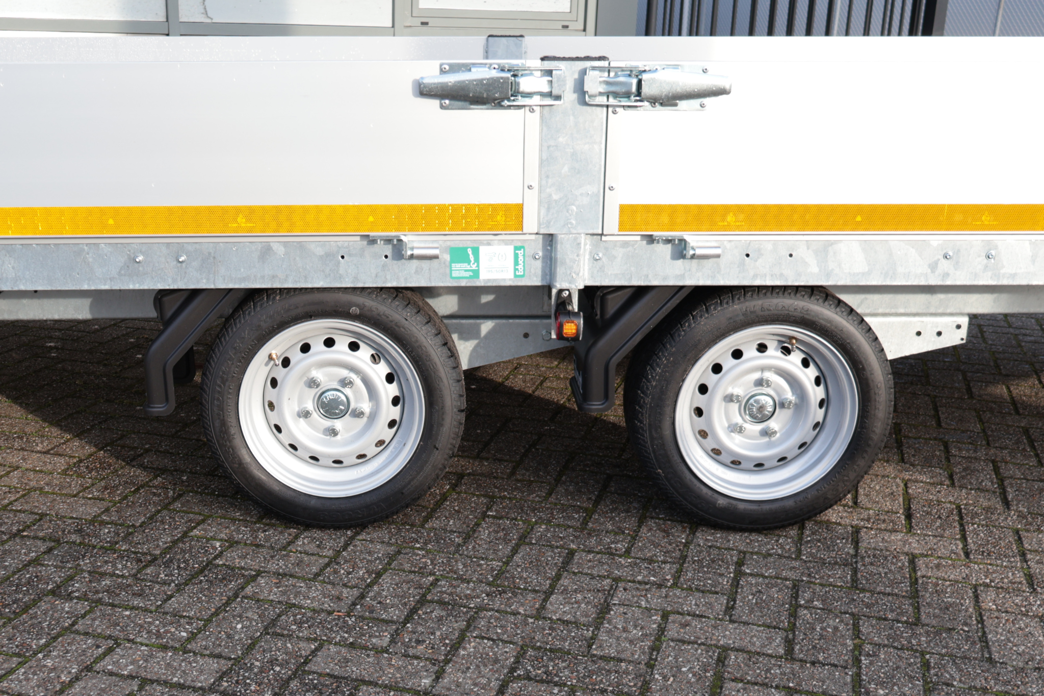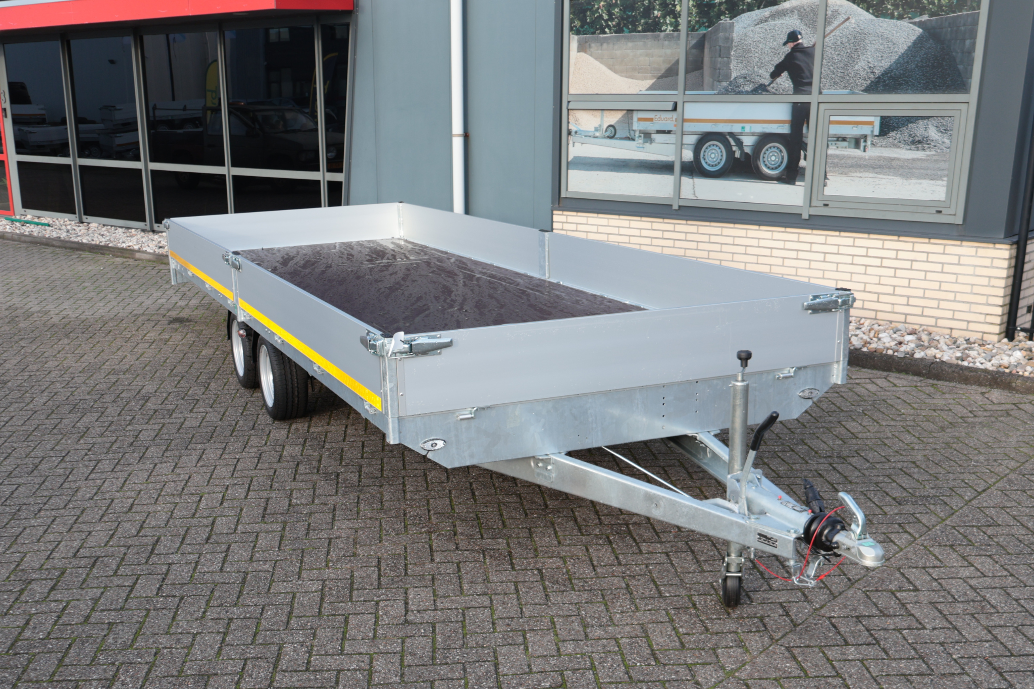 Lease aanbod Geremde Eduard plateauwagen - 606x200 cm - 2700 kg bruto laadvermogen - 63 cm laadvloerhoogte - 30 cm borden