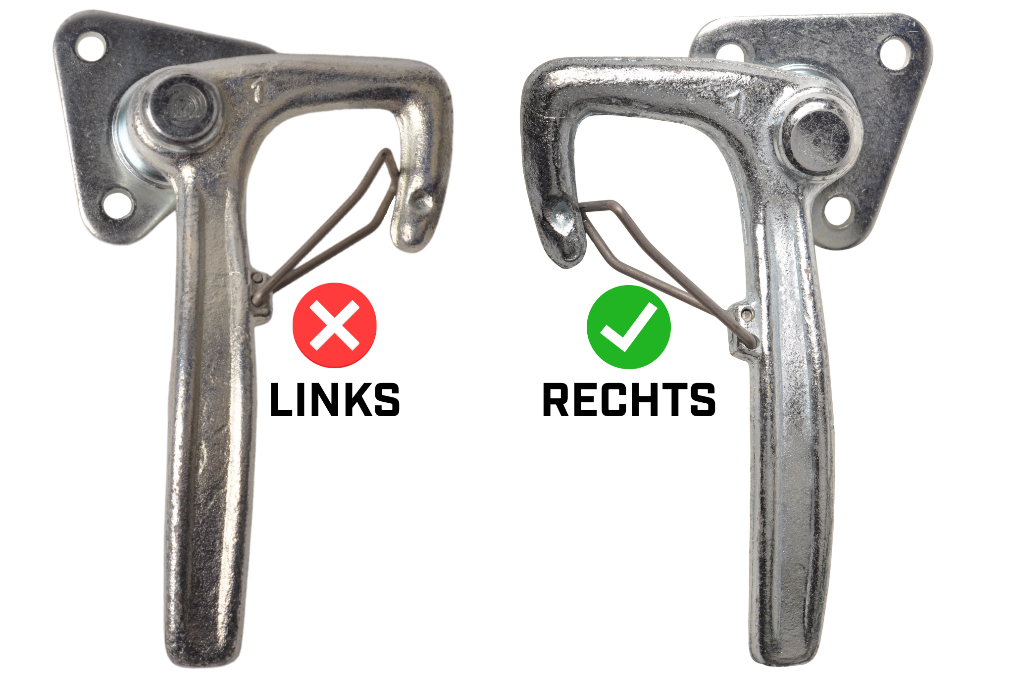 Haaksluiting RECHTS klein type 1 met veer (kleine bevestigingsplaat)