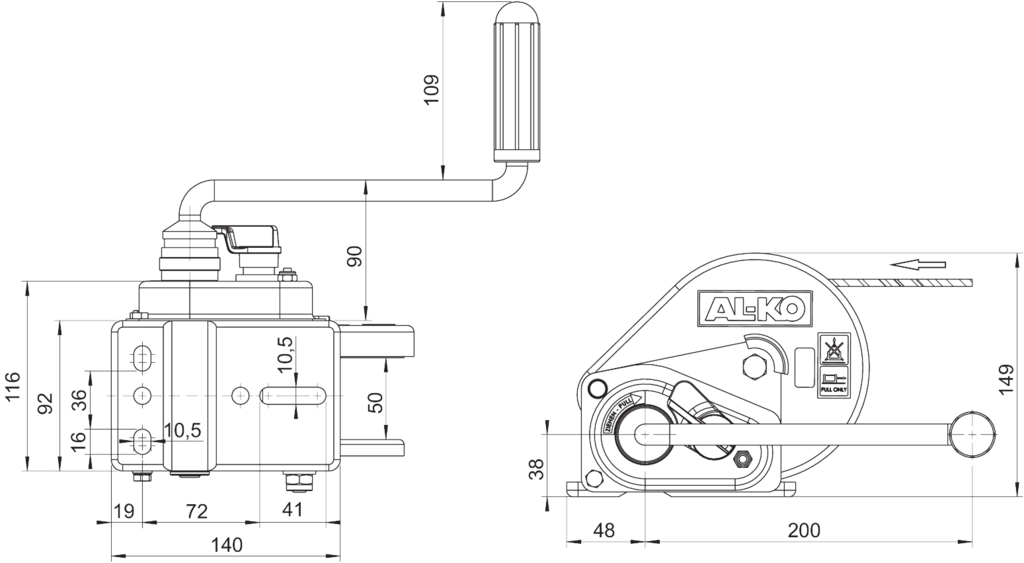 De AL-KO 450 Compact geremde handlier beveiligt de last bij het heffen, trekken en neerlaten met een automatische lastdrukrem. Ook heeft deze AL-KO lier een afneembare slinger.