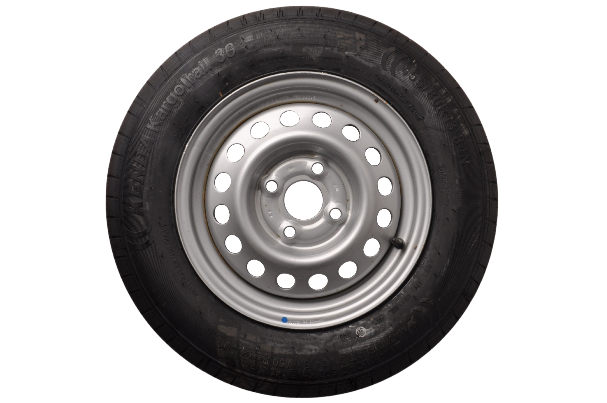 Technische gegevens: Compleet aanhanger wiel - 155R13 - steekmaat: 4x100 - draagvermogen: 500 kg - naafdiameter: 57 mm