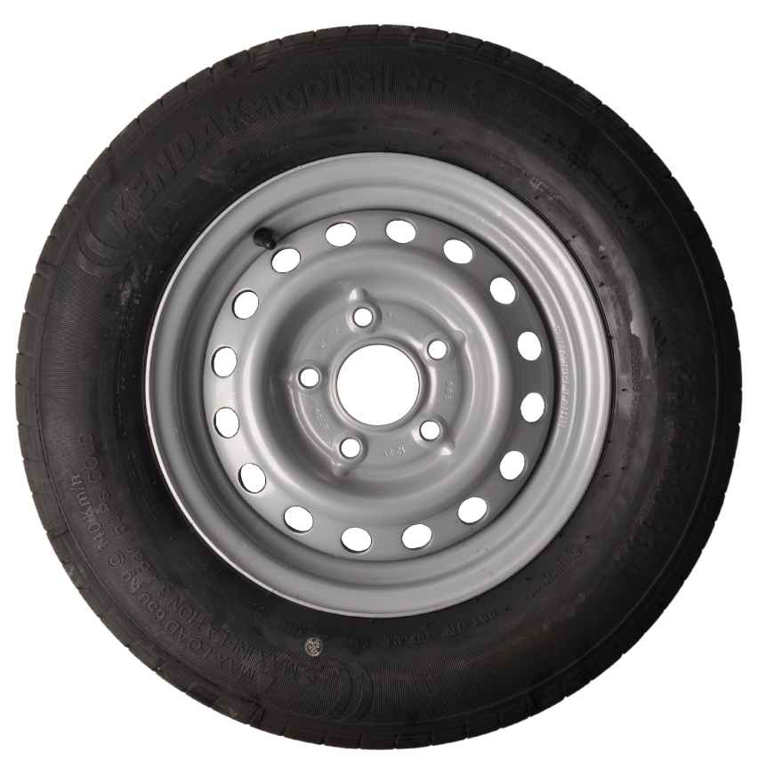 Dit complete 13 inch aanhangerwiel met de bandenmaat 185/70r13 heeft een maximaal draagvermogen van 650 kg. De complete diameter van dit wiel is 59 cm en de totale breedte is 18,5 cm. De velg heeft een steekmaat van 5x112 mm.