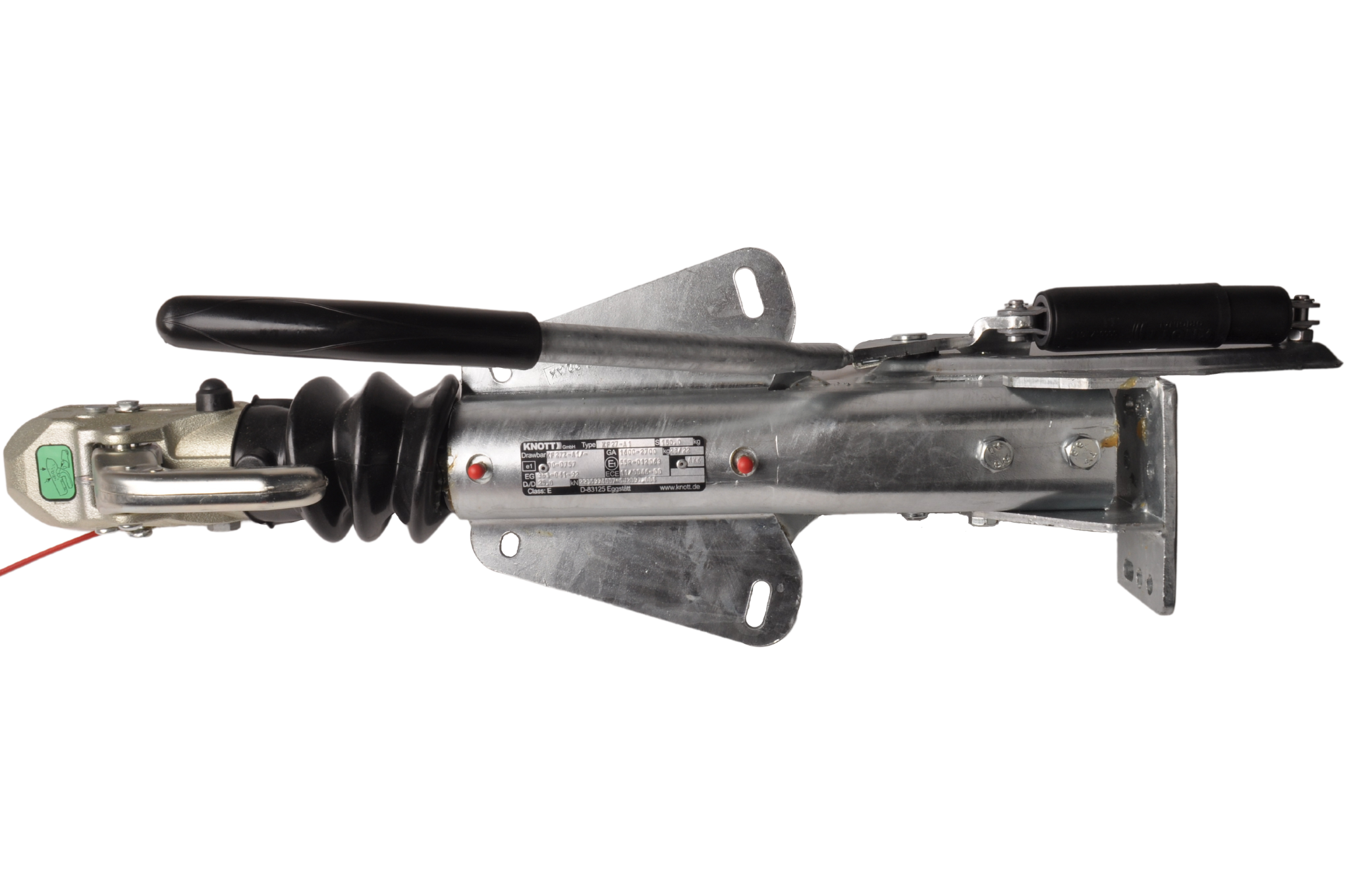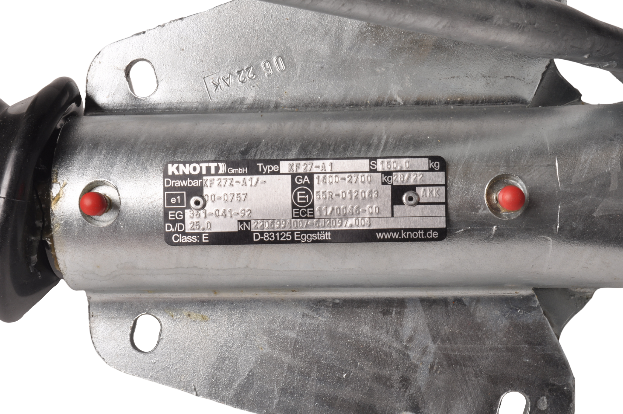 Originele Knott oplooprem KF27 met een maximaal trekvermogen van maar liefst 2700 kg. Deze oploomrem heeft v-dissel aansluiting met sleufgaten. Deze word standaard geleverd inclusief neuswielconsole.