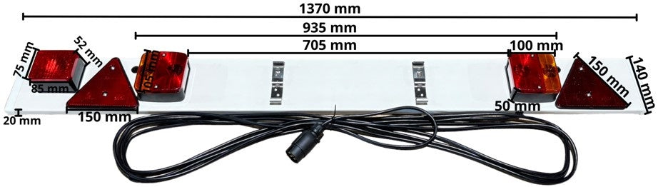 Verlichtingsbalk kunststof voor aanhanger - lengte 137 cm - 8 meter hoofdkabel - 13 polige aansluiting - Plug & Play