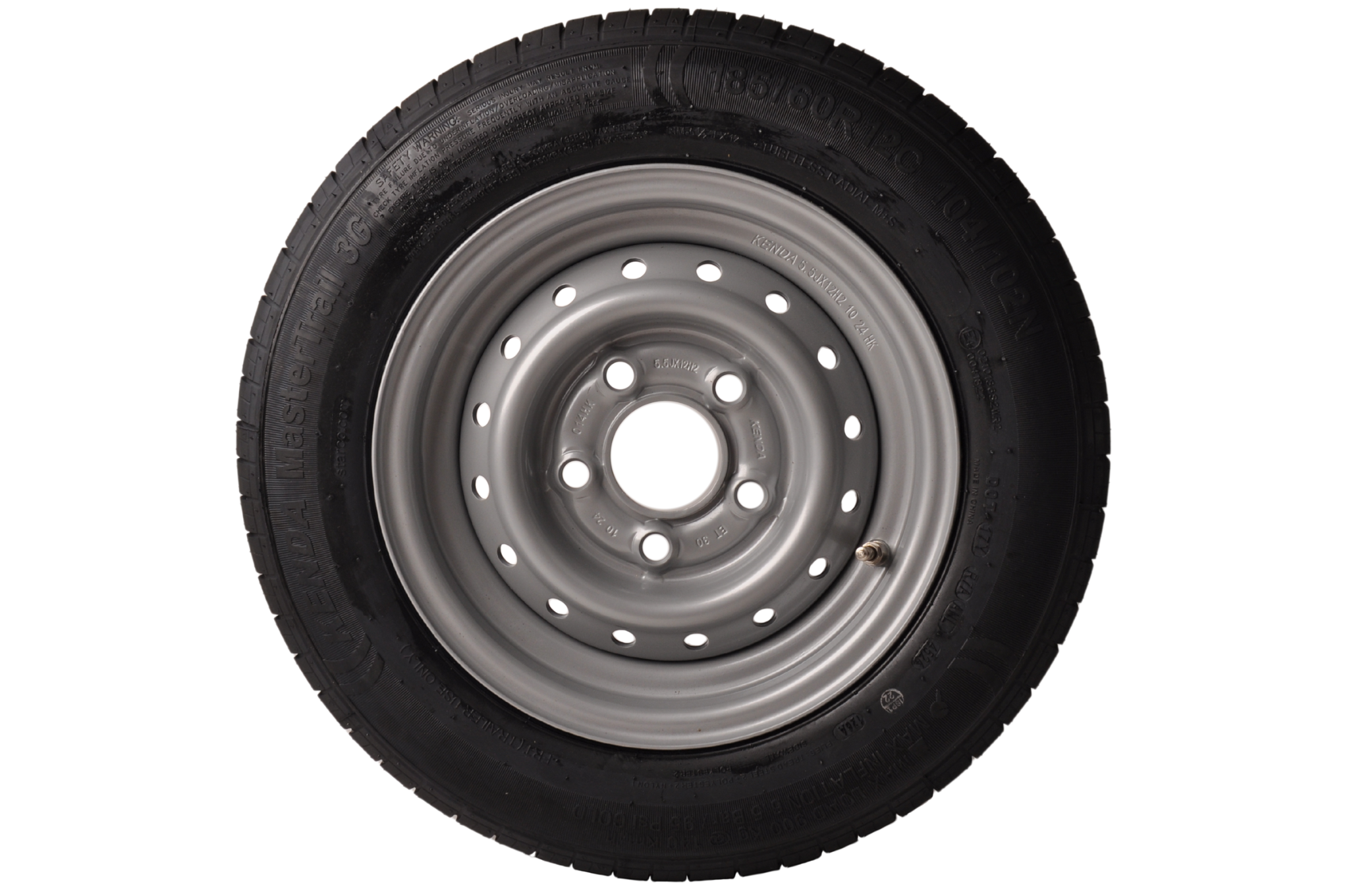 Technische gegevens: Compleet aanhanger wiel - 185/60R12C - steekmaat: 5x112 - draagvermogen: 900 kg - naafdiameter: 67 mm