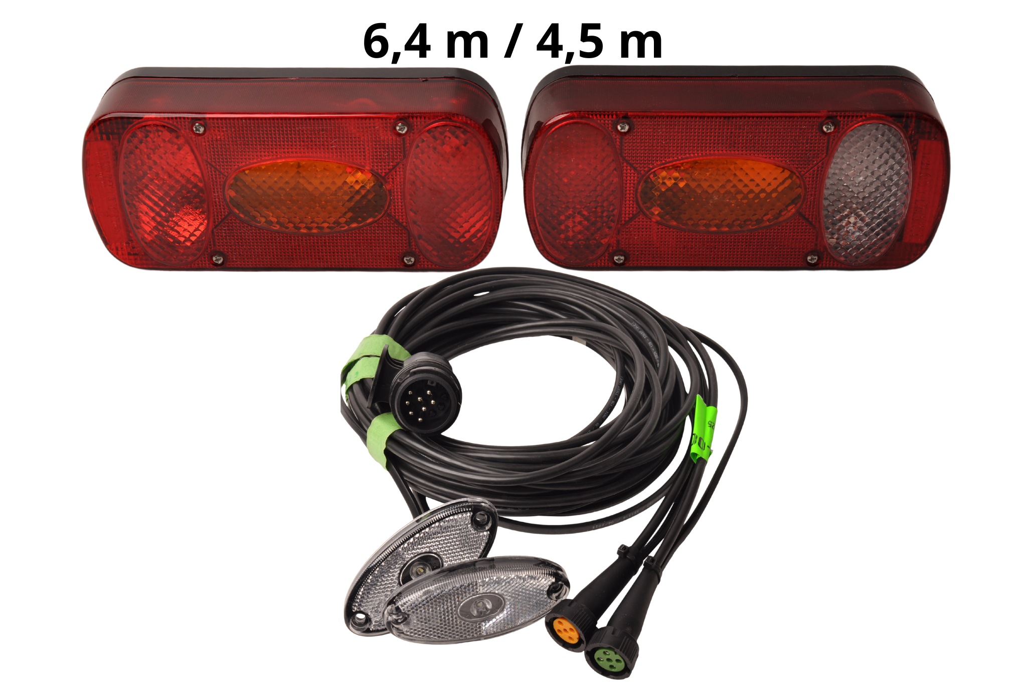 Kabel: 6,4 meter met voorgemonteerde LED markeringsverlichting (Flatpoint) (wit) op 4,5 meter platte kabel.