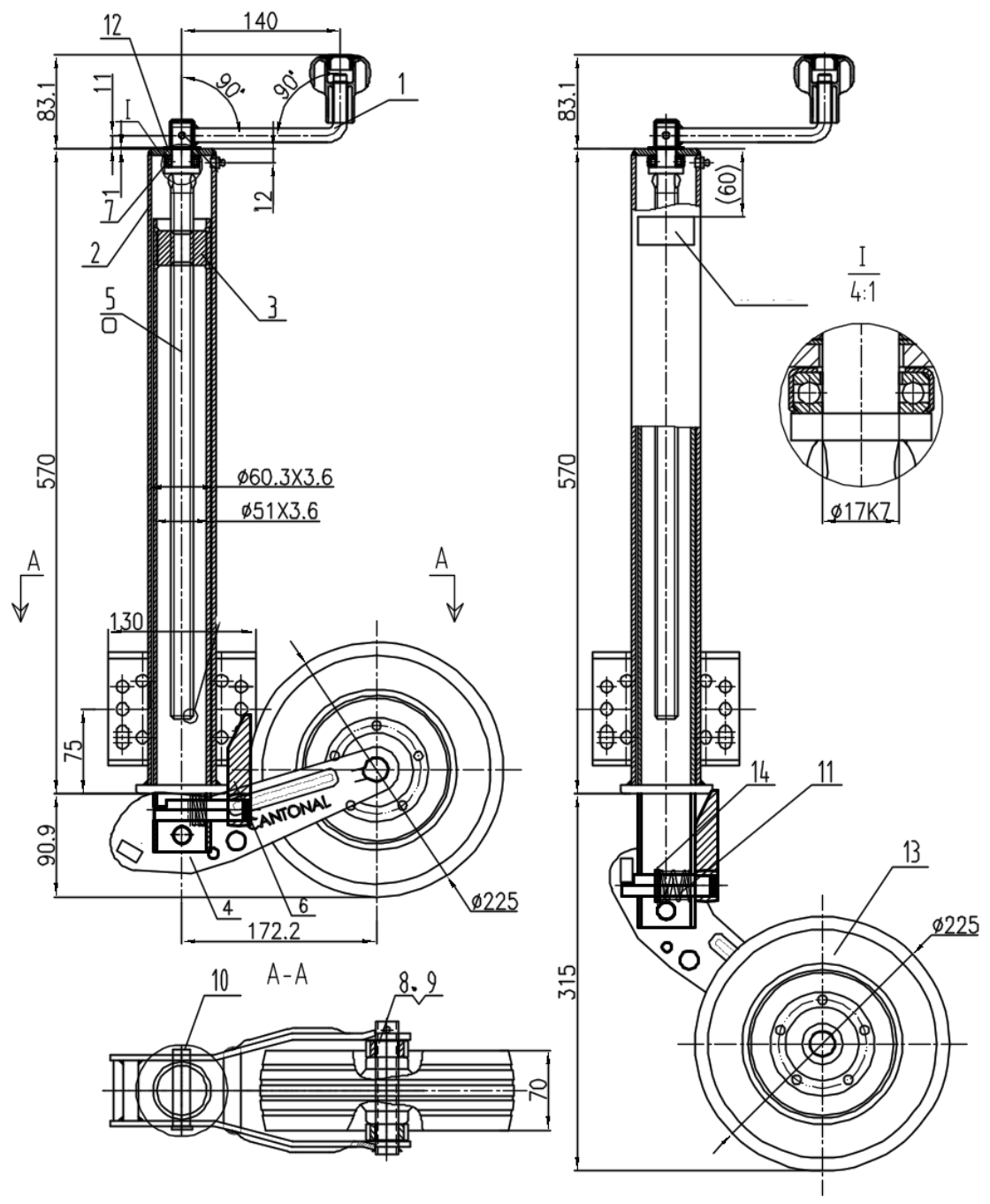 Dit zware robuuste steunwiel uitvoering heeft een extra lange buislengte en daarmee geschikt voor praktisch alle aanhangwagens en de mogelijkheid deze hoog op te draaien met wel 57 cm uitdraai.