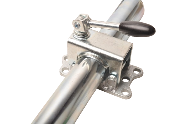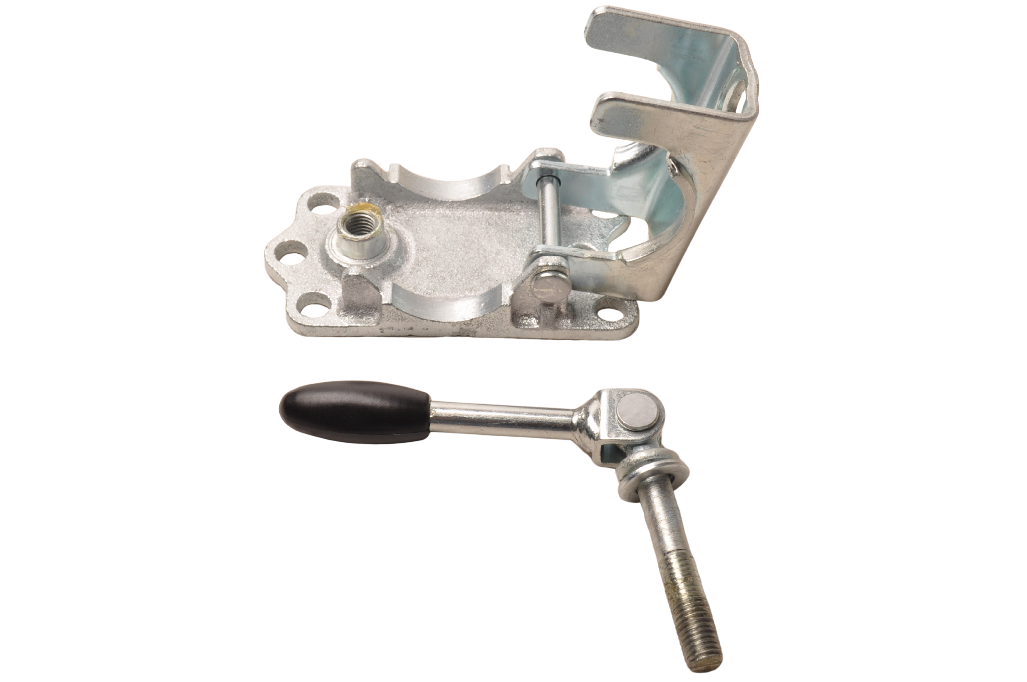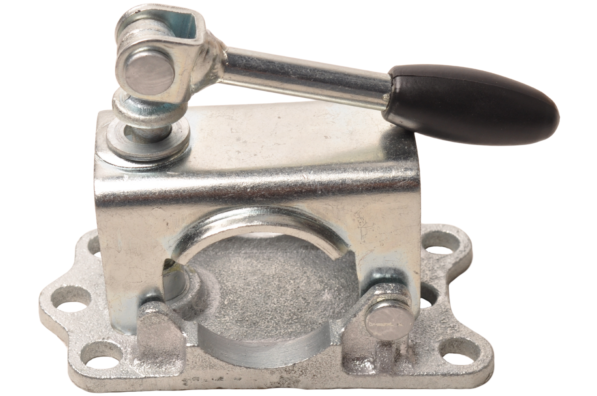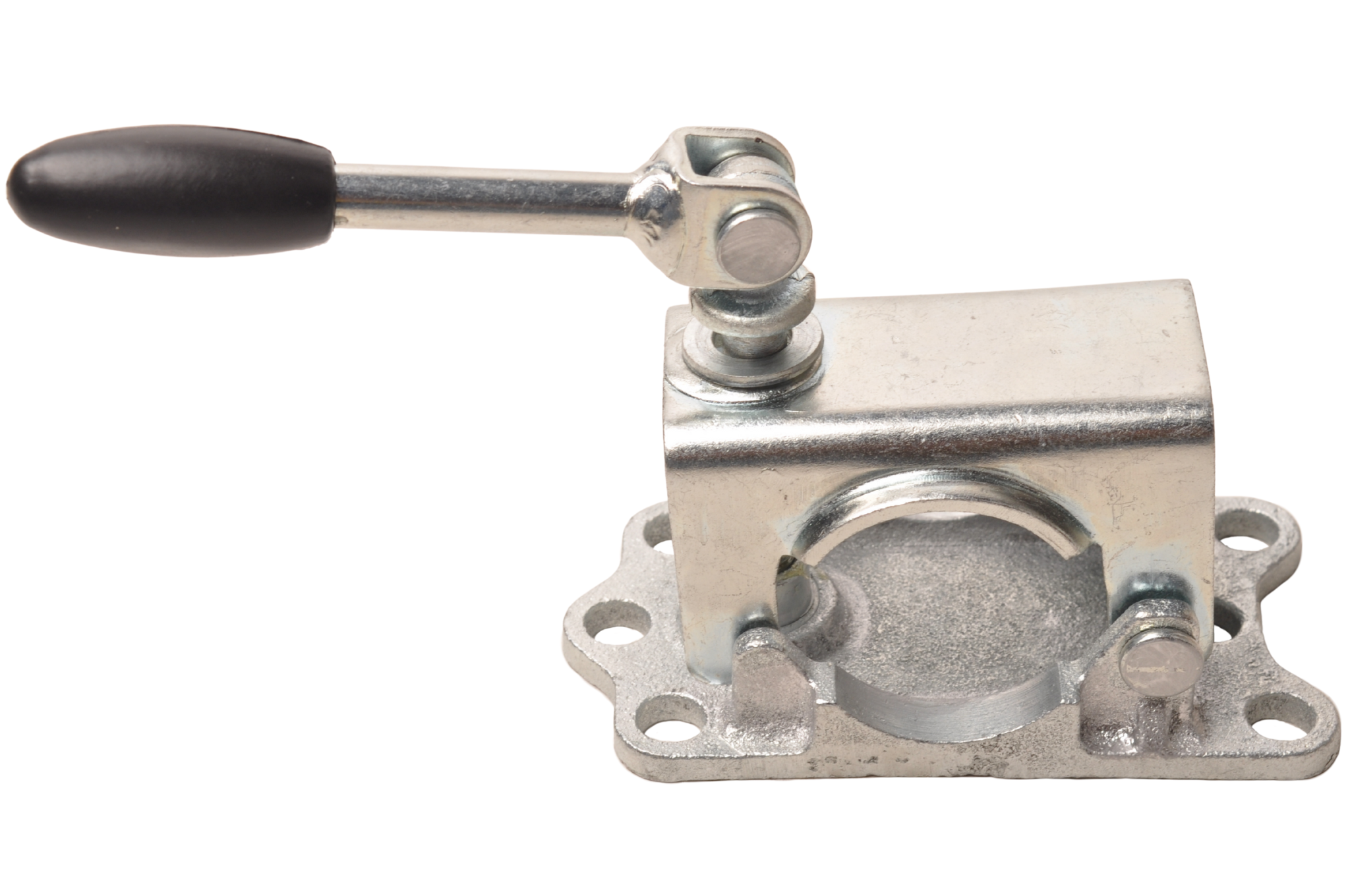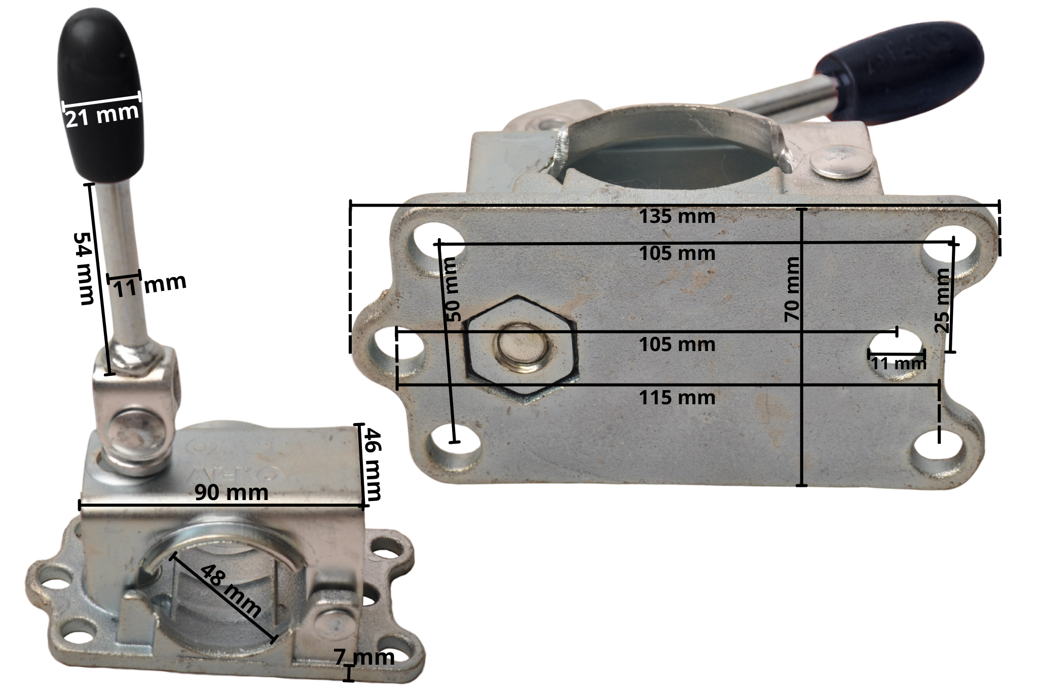 Neuswielklem geschikt voor neuswielen met een 48 mm buisdiameter. Voorzien van 6 bevestigingsgaten. Uitgevoerd met inklapbare zwenkhendel. Geschikt voor een 48 mm neuswiel.