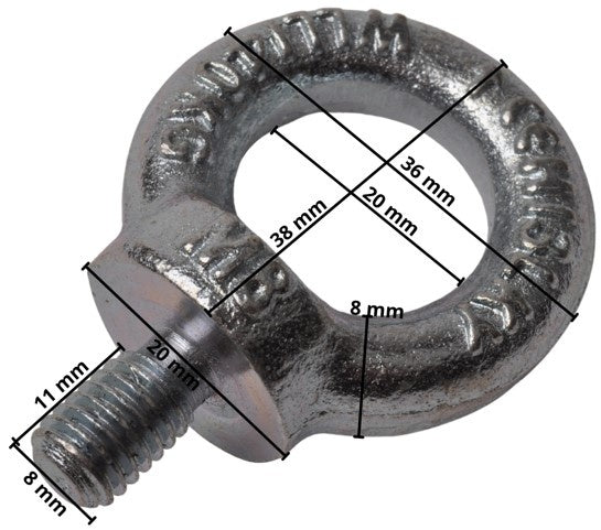 Oogbout M8 verzinkt. oogopening van 20mm en diameter van staal van 8 mm