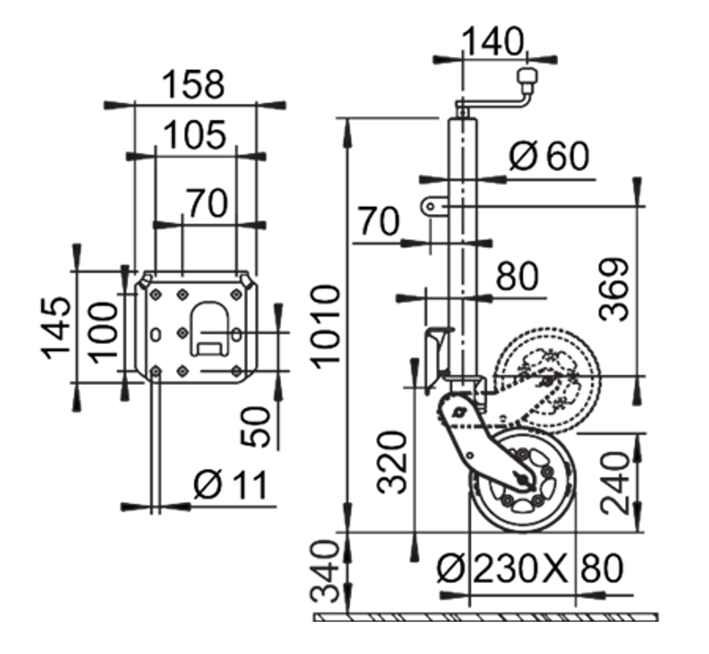Dit is HET neuswiel als je een zwaar kwalitatief neuswiel wilt als alternatief voor de Winterhoff neuswielen. Alles is gewoon steviger uitgevoerd wat ook resulteert in een zwaardere maximale belasting van 500 kg. Geschikt voor intensief dagelijks gebruik.