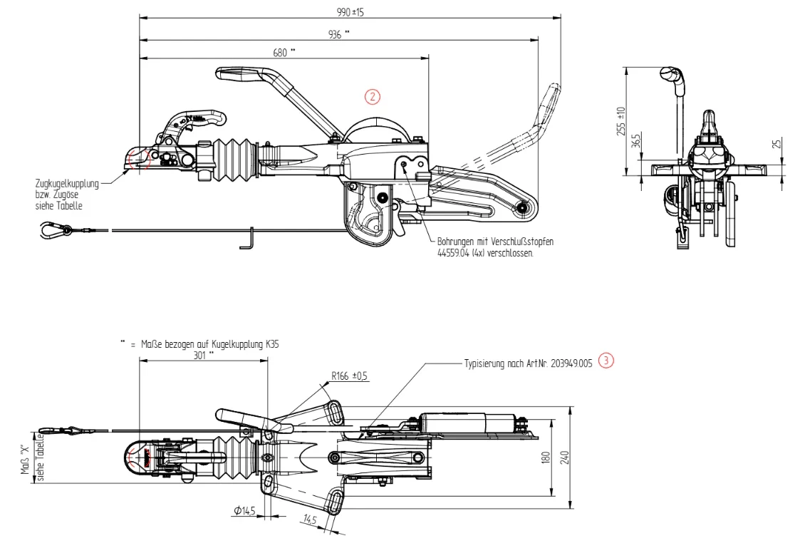 Oplooprem aanhanger KFG30 type A (3000kg) V-dissel - exclusief neuswielconsole