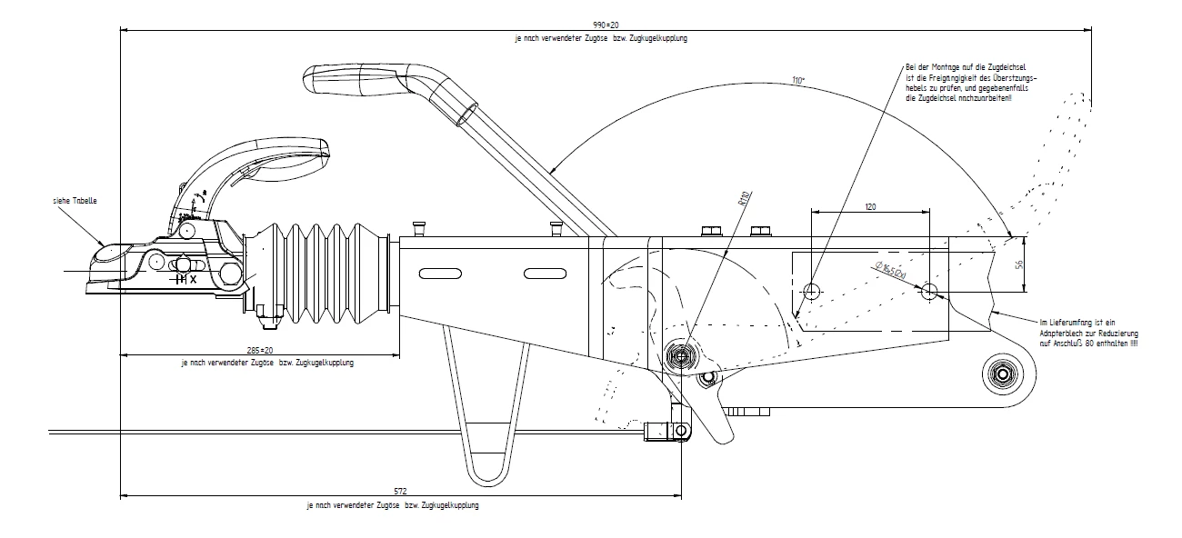 Knott oplooprem aanhanger KRV30BGF - 3000 kg maximaal trekvermogen - koker 80 mm aansluiting