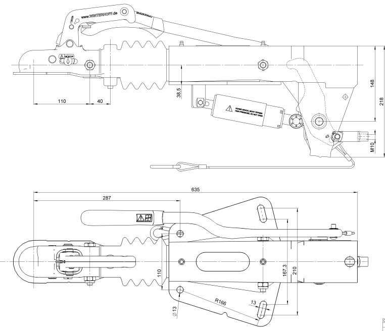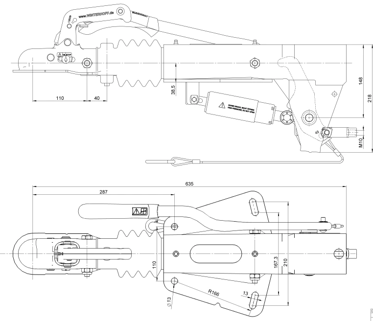 H.o.h. afstand achterste sleufgaten: 167 > 210 mm