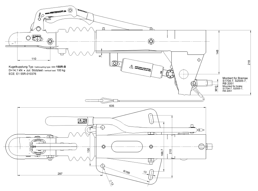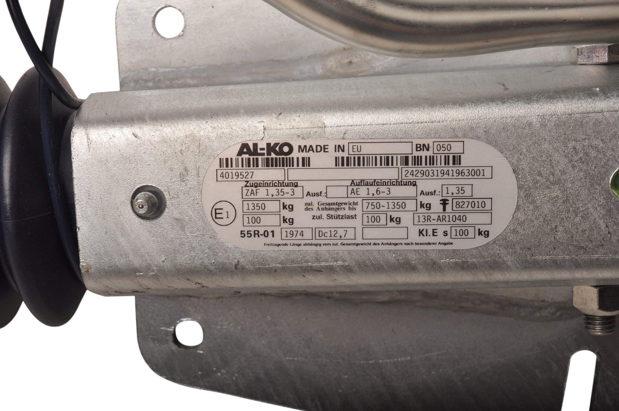 BPW oplooprem aanhanger - ZAF 1,35-3 - maximaal trekvermogen: 1350 kg - V-dissel aansluiting