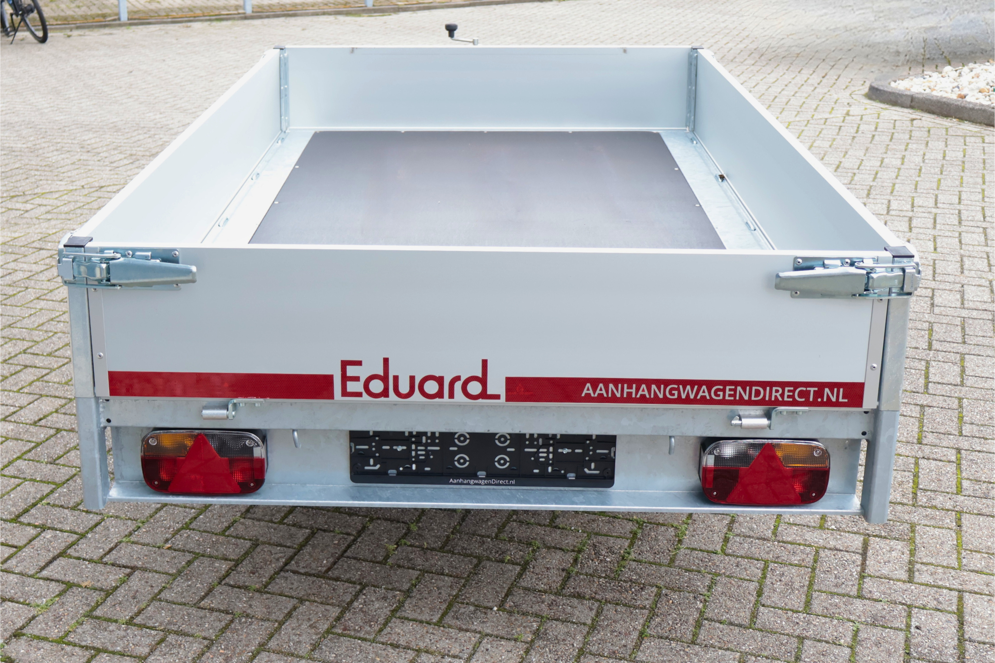 Geremde Eduard plateauwagen - 256x150 cm - 1350 kg bruto laadvermogen - 63 cm laadvloerhoogte - 30 cm borden