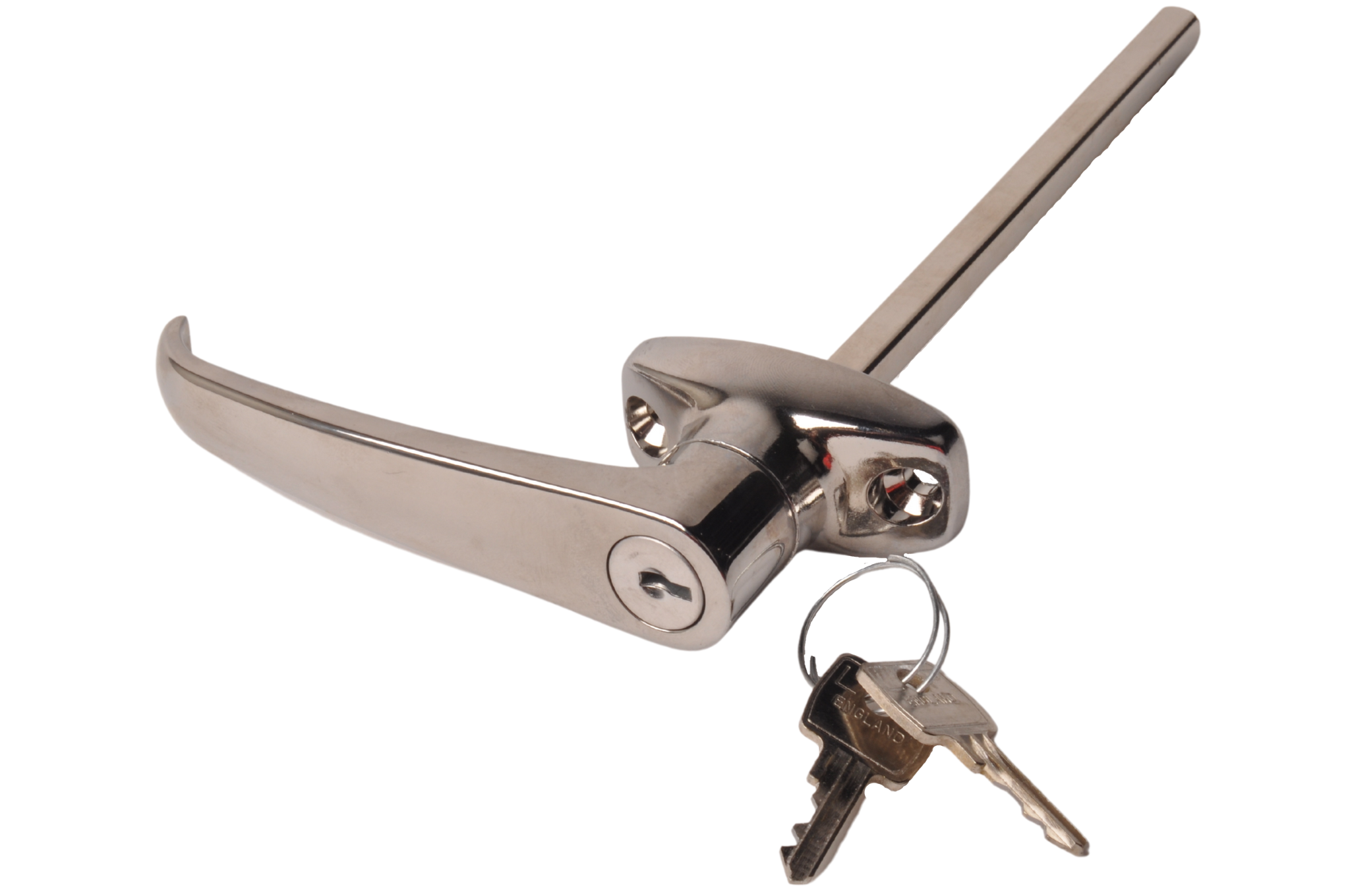 Verchroomde Portierkruk/ deurklink afsluitbaar inclusief sleutel. Deze deurklink is eenvoudig te monteren.