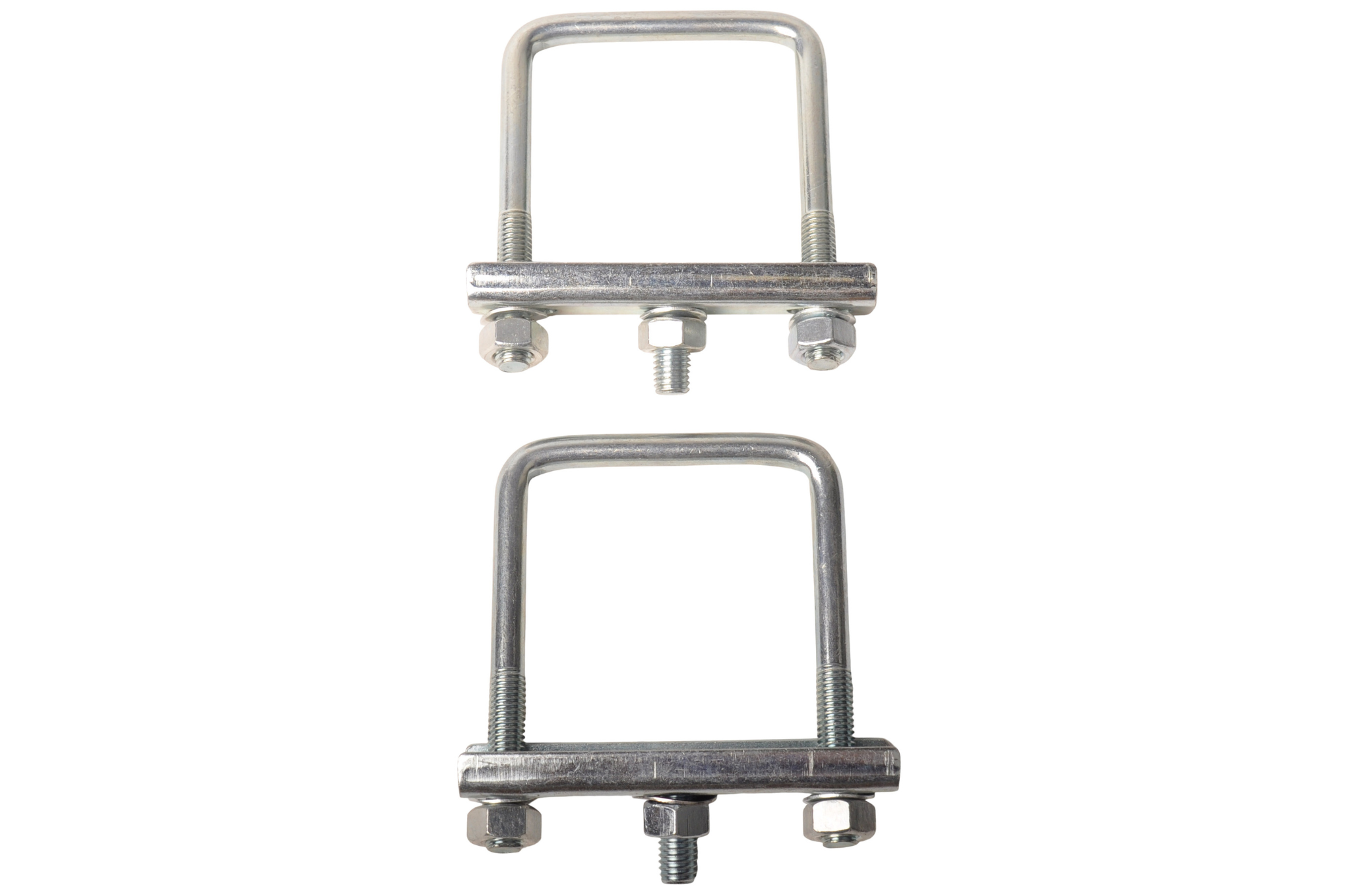 Geschikt om neuswiel klem aan rechthoekige koker dissel (70mm) te kunnen bevestigen zonder te hoeven lassen. Onze neuswiel klem van rond 48 mm past hier op. (complete set van twee klemmen en bevestigingsmateriaal).