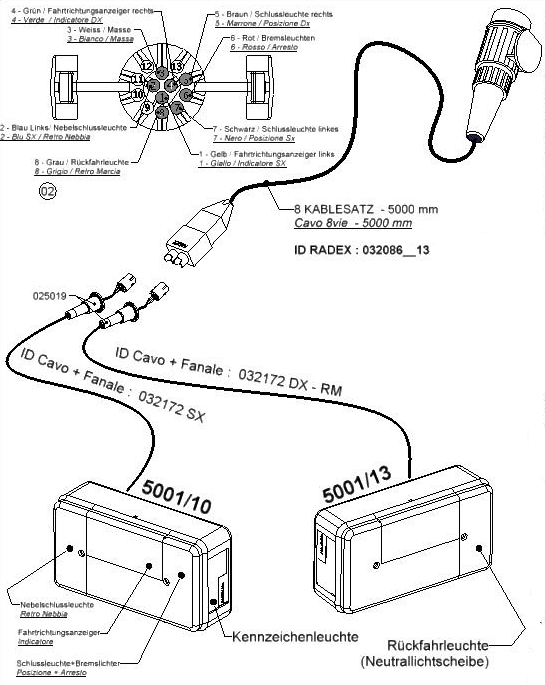 Verlichtingsset - Radex 5001 - 5 meter hoofdkabel - 13 polig - Plug & Play