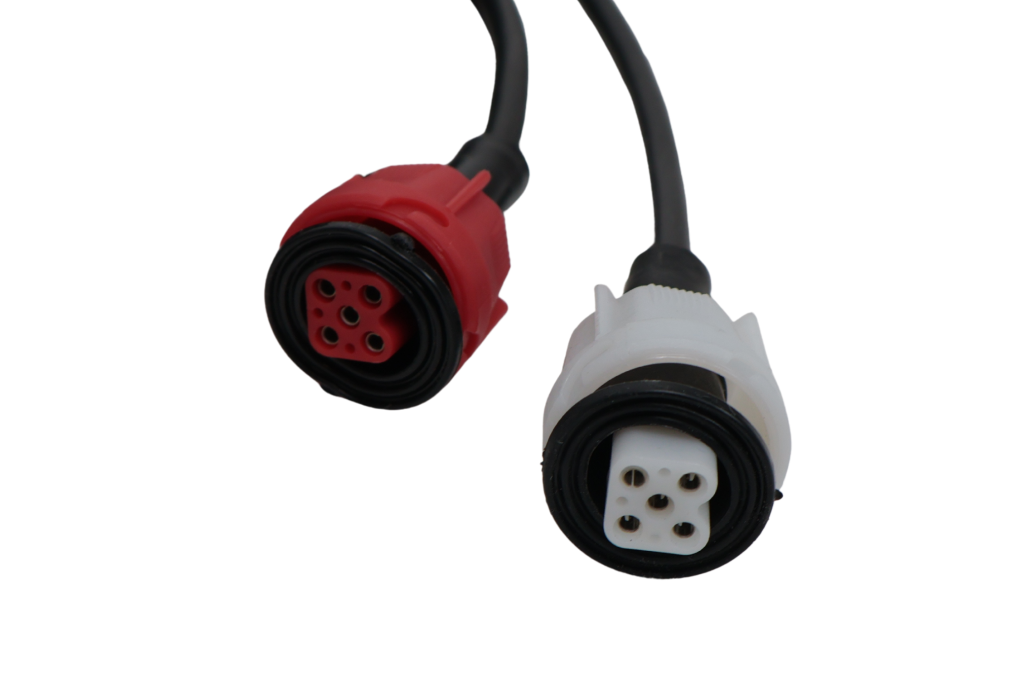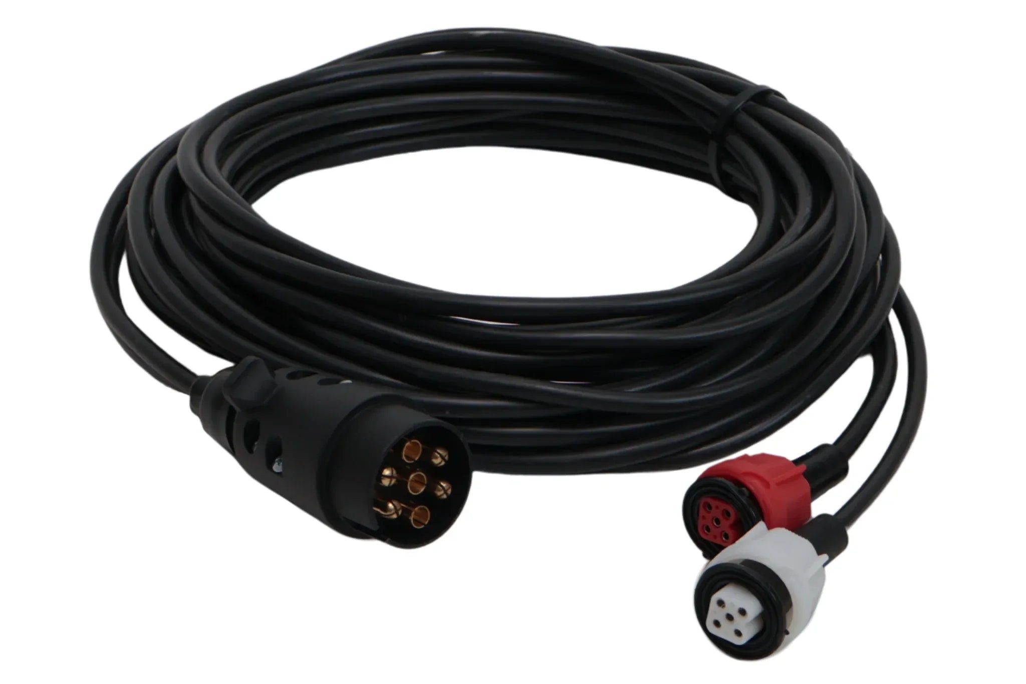 Deze hoofdkabel splits gelijk bij de 7 polige stekker, deze hoofdkabel bestaat uit twee 7 meter kabels met een 5 polig connector.