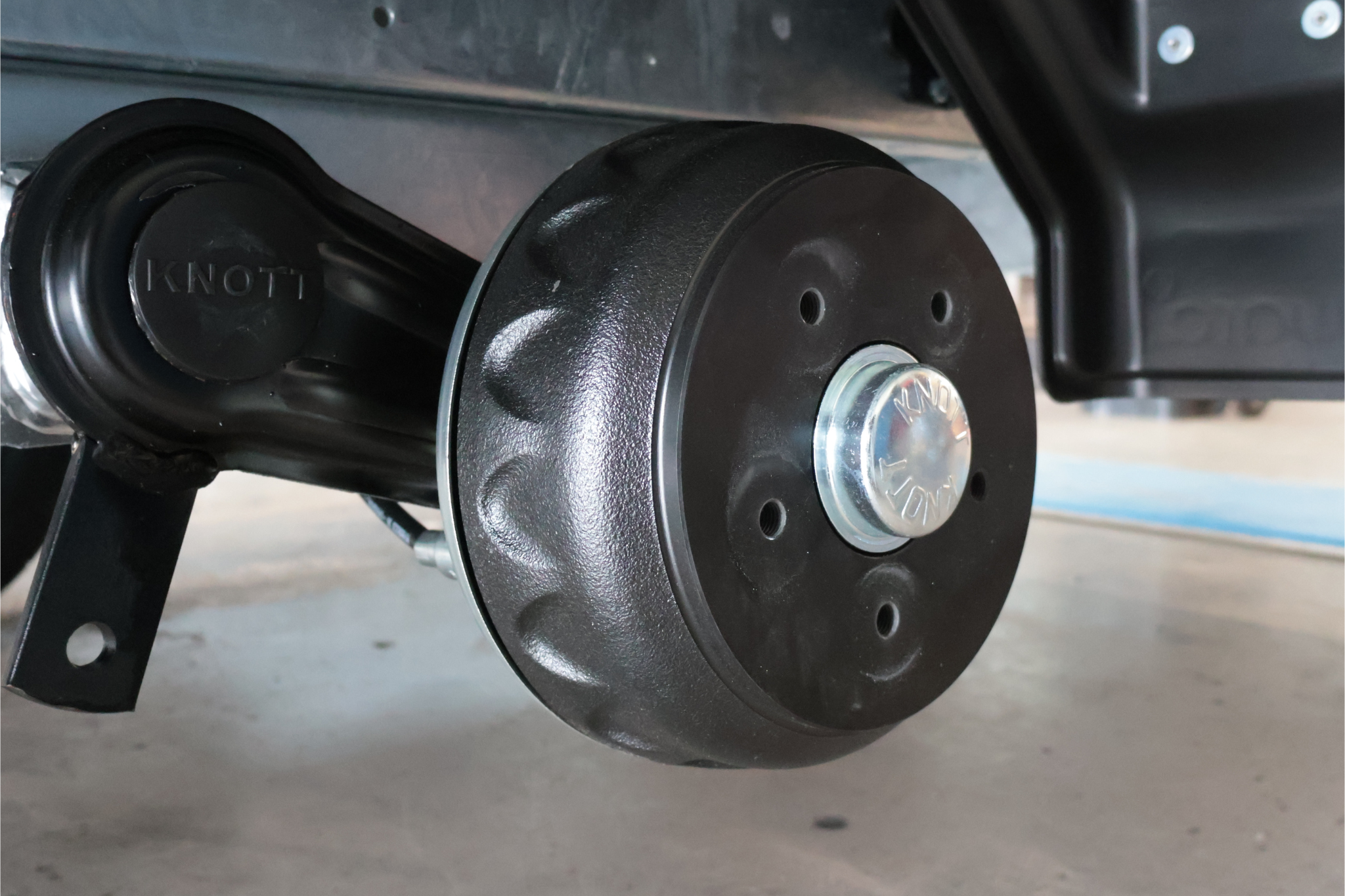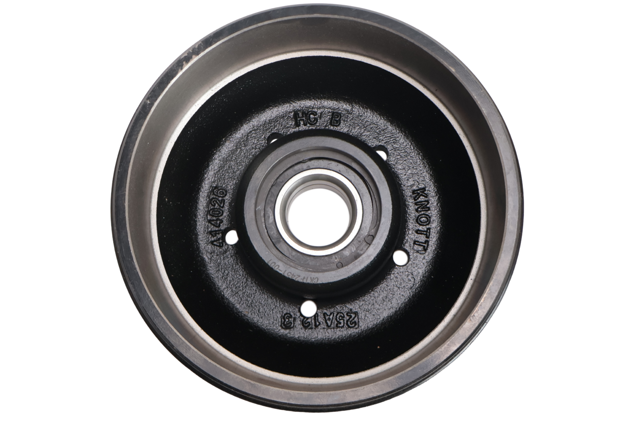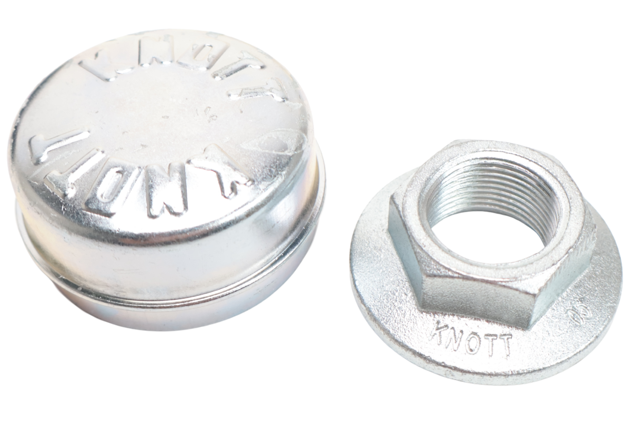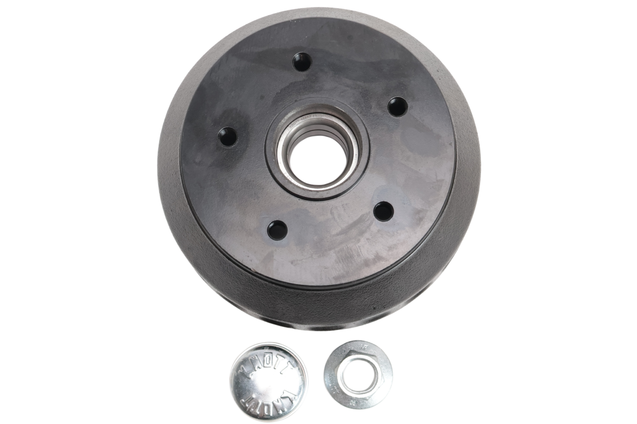Complete remtrommel set van Knott met compactlager, flensmoer en naafdop. Geschikt voor assen met een 5x112 wielaansluiting.